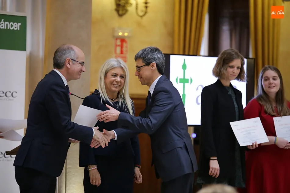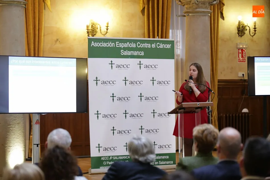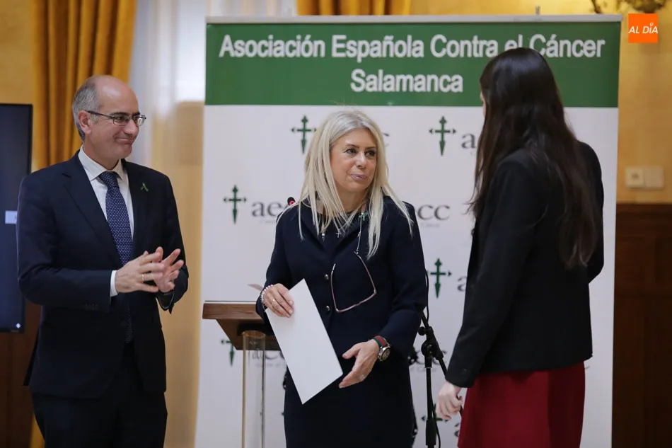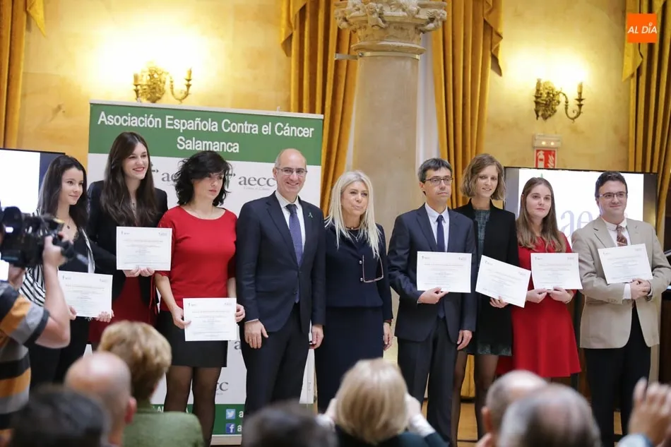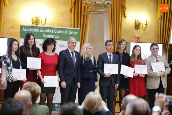 ?Los salmantinos tenemos que sentirnos orgullosos, cada uno hacemos posible la financiación de estas becas?. Así lo ha afirmado la presidenta de la Asociación Española Contra el Cáncer (AECC) en Salamanca, Inmaculada Rodríguez, en el acto de entrega de siete becas de investigación por valor de 600.000 euros que se ha celebrado en el Casino.