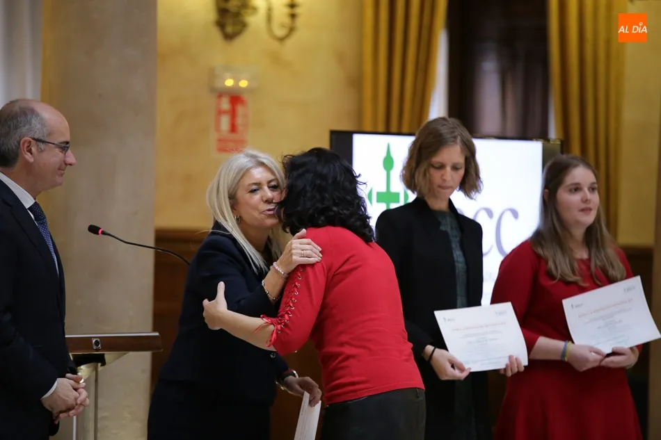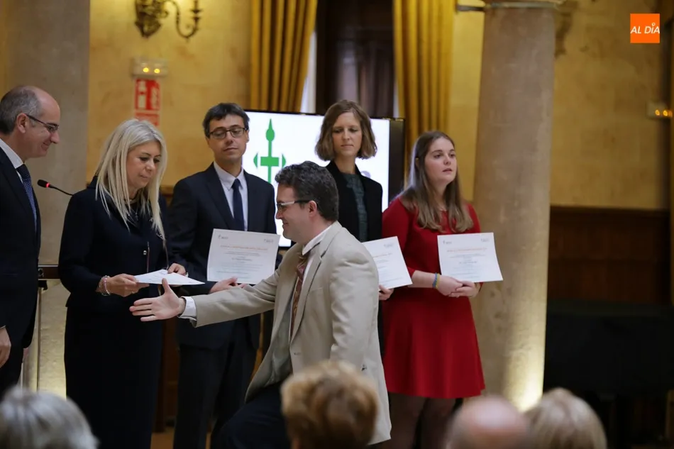 Al acto de entrega de las siete becas ha asistido una amplia representación política y social de Salamanca como la vicerrectora de Postgrado y Planes Especiales en Ciencias de la Salud de la Universidad, Purificación Galindo; la directora del Gabinete del Rector, Mª Dolores Calvo; el presidente de la Diputación, Javier Iglesias; la concejala de Salud Pública, María José Fresnadillo; el delegado territorial, Bienvenido Mena, así como concejales de los cuatro grupos políticos.