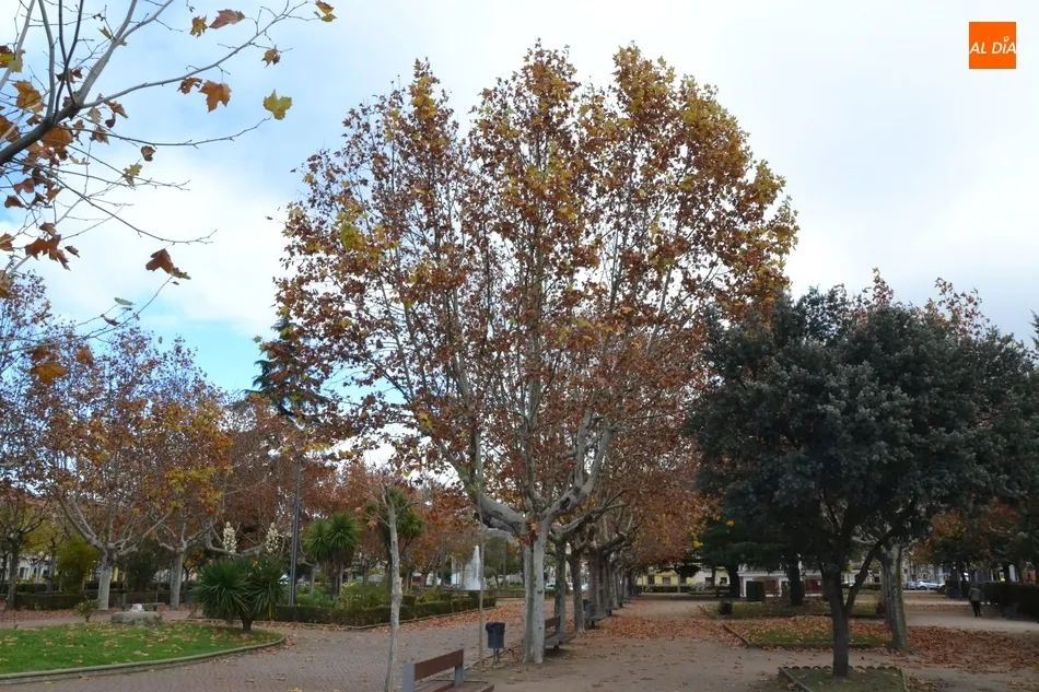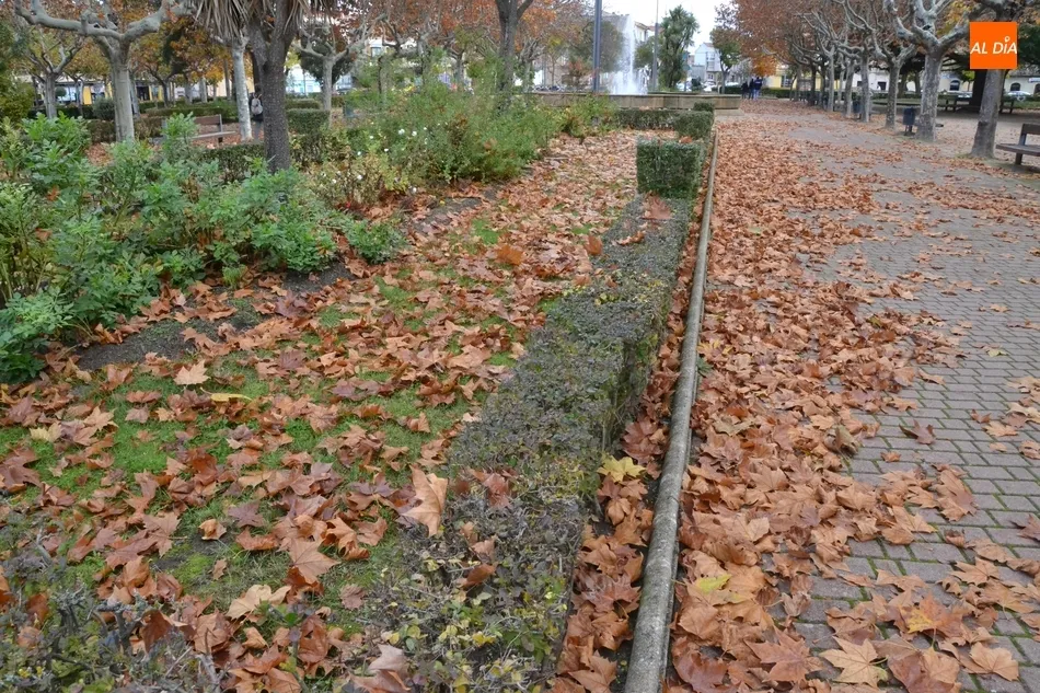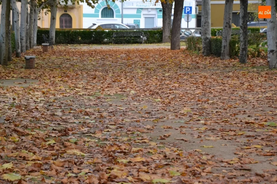 Todos aquellos ?amantes? de la época otoñal tienen ahora mismo en el Parque de La Glorieta de Ciudad Rodrigo un buen ejemplo de la misma, ya que gran parte de la superficie del céntrico parque mirobrigense está recubierta por un espectacular manto de hojas de color ocre, especialmente el lateral del Parque anexo a la calle Santa Clara.
