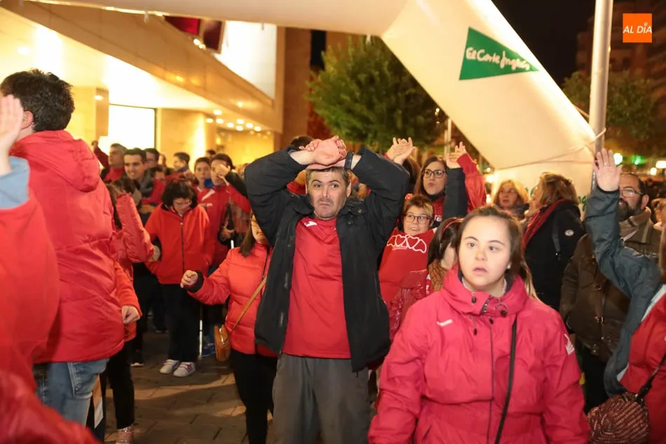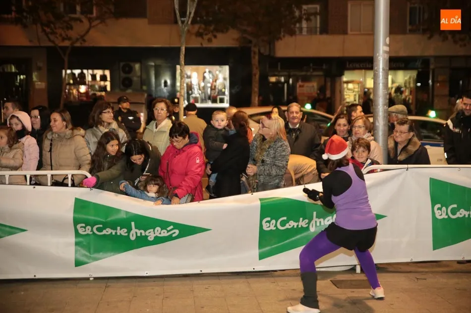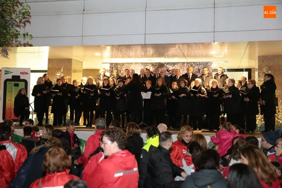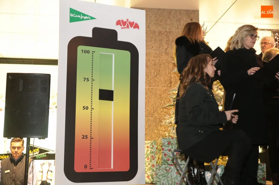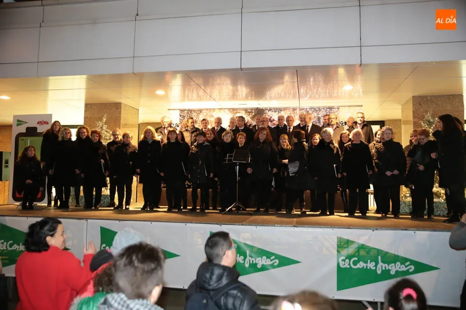 El Corte Inglés de Salamanca inauguraba hace unos instantes la Navidad con el encendido de la iluminación especial de la fachada de la calle María Auxiliadora. En esta ocasión, El Corte Inglés ha contado con la inestimable ayuda de la Fundación AVIVA, que prestará su ?energía?, imprescindible para poder iluminar con motivos navideños la fachada del gran almacén. Para ello, los chicos y chicas de AVIVA, acompañados por los miembros de la ?familia AVIVA? y continuando con el espíritu de la ?Carrera de los 1.000 pasos? de este pasado domingo, dieron una vuelta corriendo alrededor del edificio de El Corte Inglés. Además, la actividad ha contado con la actuación del coro Francisco Salinas, así como de otras actividades de animación para los más pequeños.