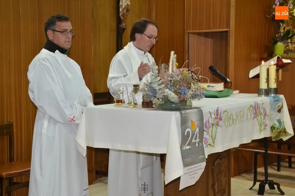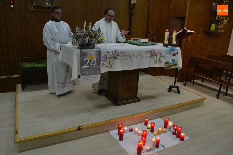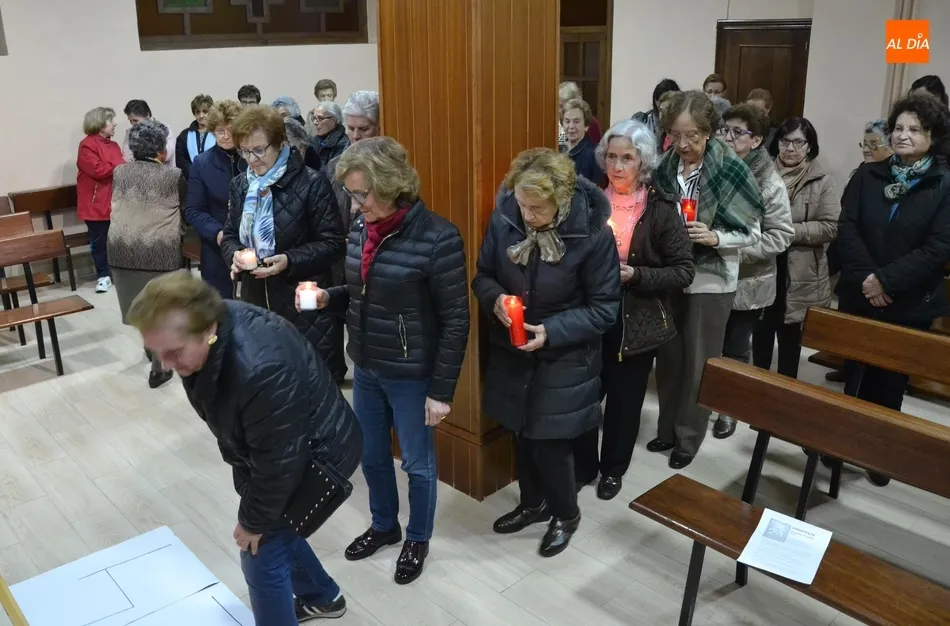 Como gesto más significativo, se conformó el número ?24? con velas aportadas por las fieles presentes, que las colocaron sobre el número dibujado previamente en un papel colocado en el suelo (las ?24 Horas que mueven el Mundo? han tenido este año como idea gráfica principal el número ?24?). Para cerrar, hubo una oración dirigida por José María Rodríguez-Veleiro.