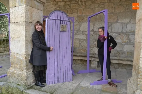 Concluido el acto de conmemoración del Día Internacional para la Eliminación de la Violencia de Género en el IES Fray Diego Tadeo, integrantes de la Asociación de Madres y Padres del IES trasladaron a pie la puerta de color violeta en torno a la cual se realizó el acto conmemorativo, que sigue el espíritu de la canción La puerta violeta de Rozalén.