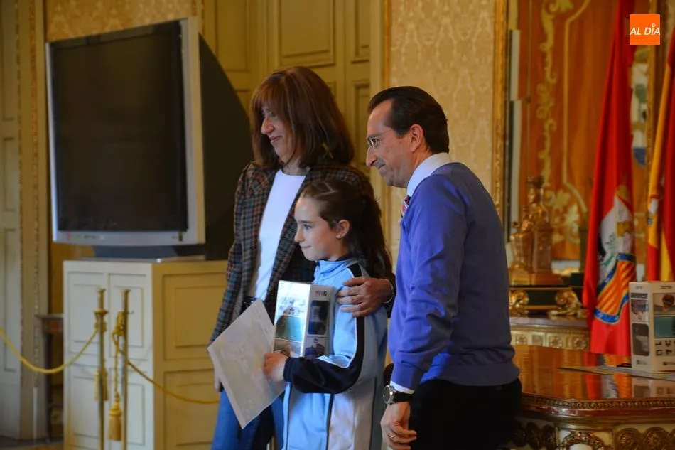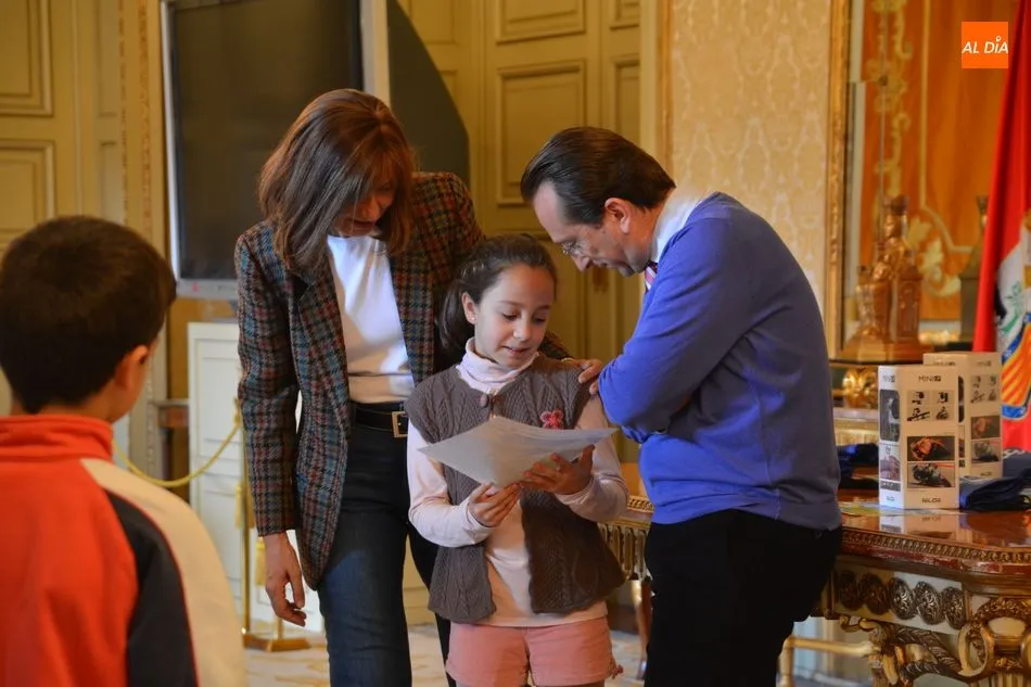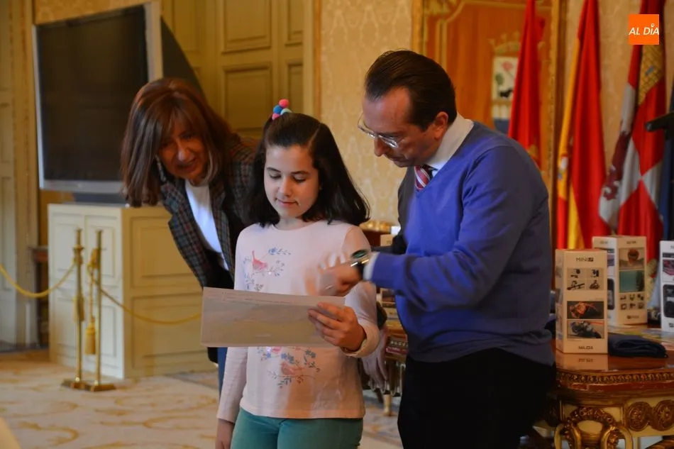 La concejala de Medio Ambiente, María José Fresnadillo, junto a Francisco Javier Rodríguez, gerente de Aqualia en la ciudad, han hecho entrega esta mañana de los premios correspondientes a la 16ª Edición de su Concurso Digital Infantil lanzado este año en torno al microsite www.aguaparagrifus.com con la intención de poner en valor el trabajo que representa llevar el agua desde la naturaleza hasta el grifo.