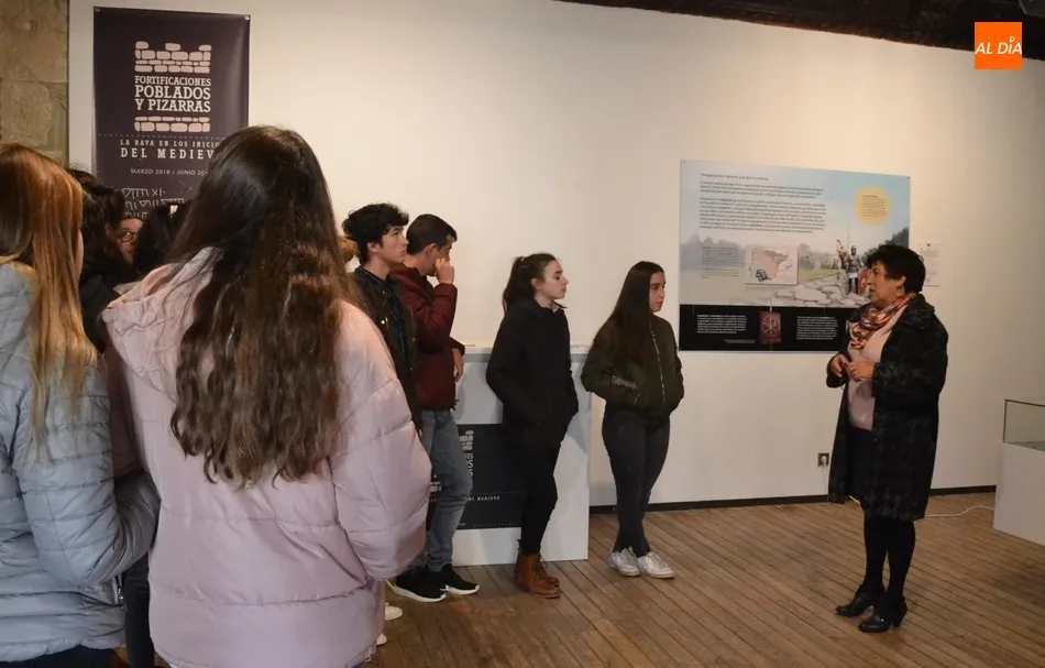 Los alumnos de la modalidad de Ciencias de 2º de Bachillerato del IES Tierra de Ciudad Rodrigo se acercaron en la mañana del viernes hasta la exposición Fortificaciones, poblados y pizarras: La Raya en los inicios del Medievo que se puede contemplar en el Palacio de Los Águila.