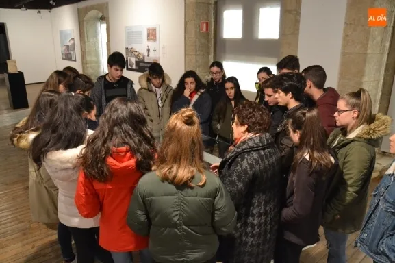Al igual que hicieron en la jornada del jueves los alumnos de la modalidad de Letras, los de Ciencias se acercaron al Palacio acompañados de su profesora de Historia de España, Asunción Ingelmo, para hacer un recorrido por la muestra de la mano de su encargada, Charo Mateos.