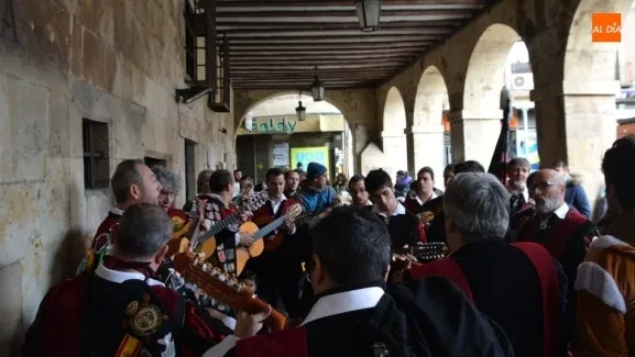 Los integrantes de la Tuna Universitaria de Salamanca han tomado algunas calles de la ciudad en la tracional reunión anual en la que participan unos 60 tunos, tanto antiguos integrantes, como los últimos en incorporarse.