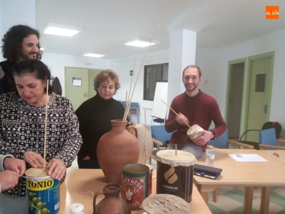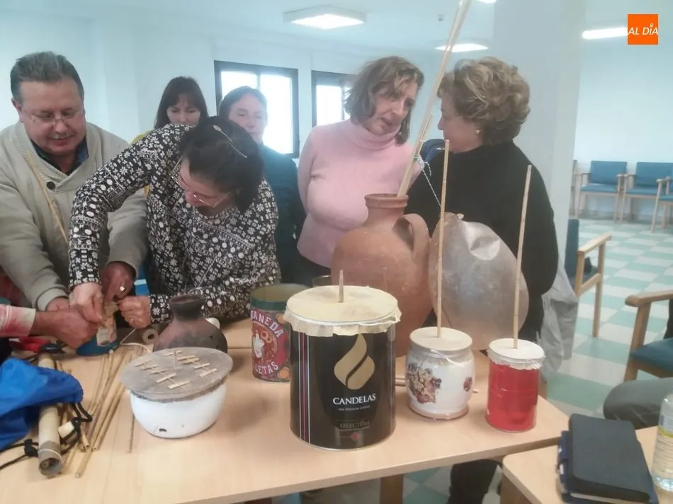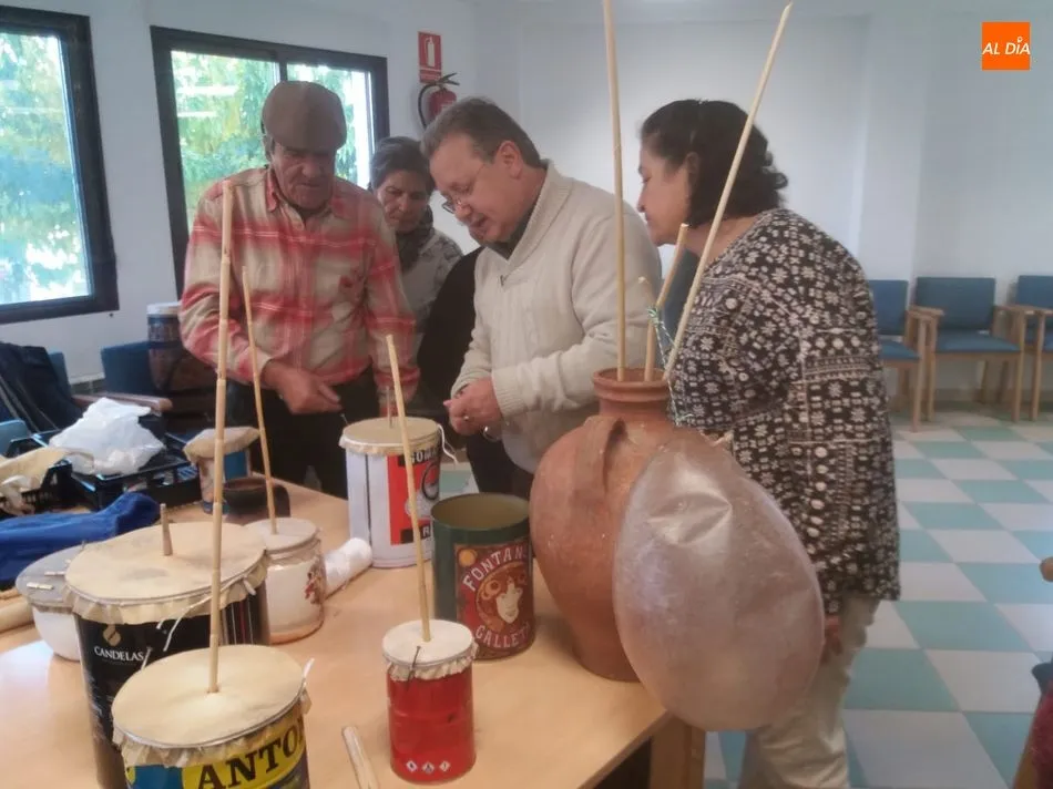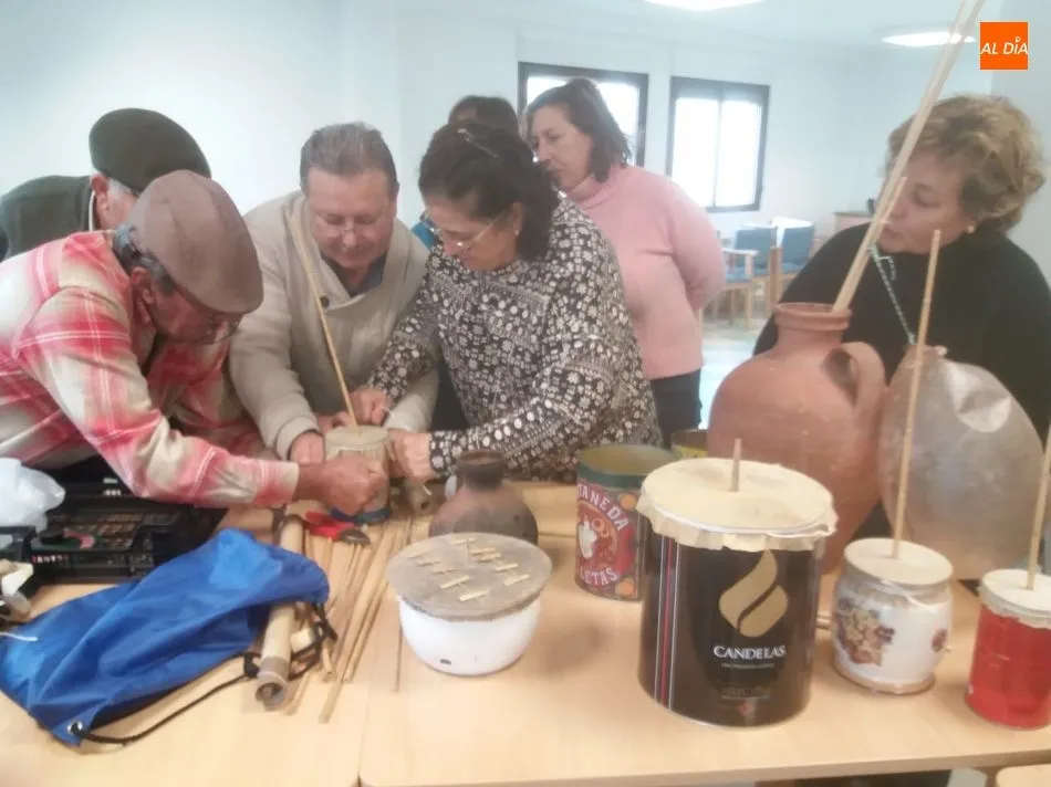 Varios vecinos de Villarino de los Aires acudían el pasado viernes al salón de baile del Centro Cultural José-Miguel Ullán de Villarino de los Aires para asistir a un Taller de Zambombas.