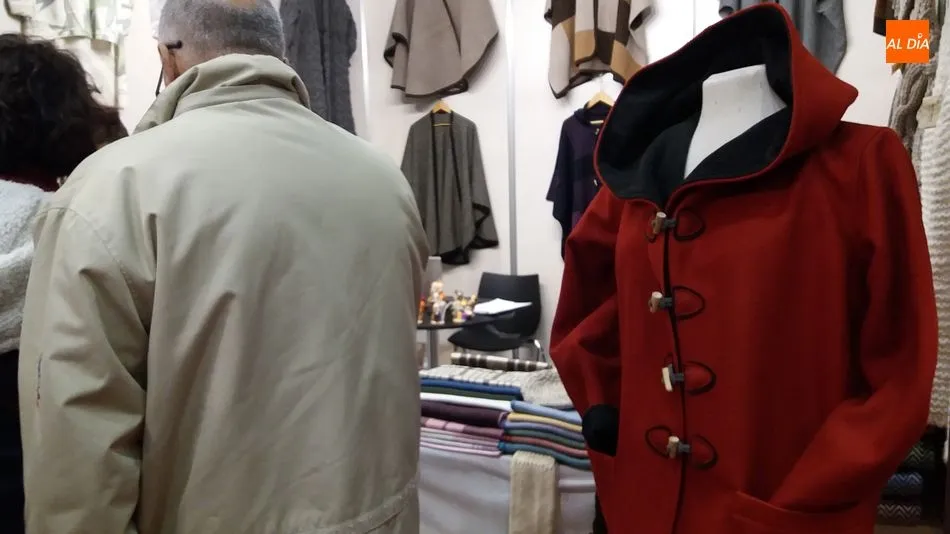 El mercado de la saudade   | Imagen 2Vinculado con el pastoreo, encontramos dos puestos que exponen diseños en burel, tejido 100% lana virgen, que tradicionalmente era usado para confeccionar las capas de los pastores, ya que su tejido compacto hace que resulte impermeable. Hoy en día el burel vive un nuevo auge, pues muchos diseñadores portugueses se han arriesgado a usarlo en nuevos patrones y complementos, como calzado o bolsos, pero también debido al uso que está teniendo en el diseño de interiores, tapizando paredes o muebles, pues es un gran aislante.