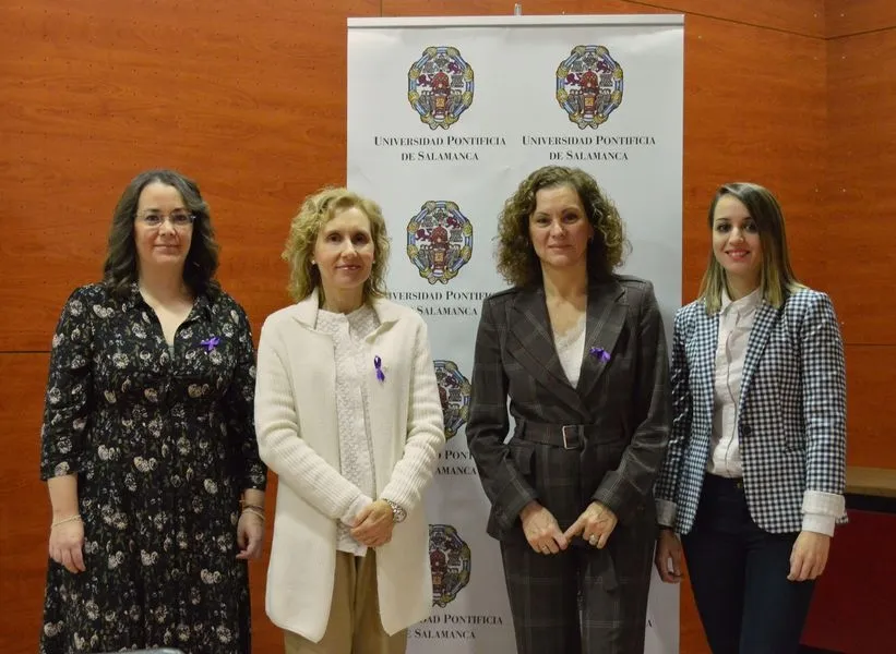 La Universidad Pontificia ha realizado la I Jornada contra la Violencia de Género dirigida a la Comunidad Universitaria. En la inauguración han participado la rectora, Mirian Cortés, acompañada por la coordinadora de la Unidad de Igualdad de la UPSA, Alejandra Melero, y de la decana de la Facultad de Educación, Amparo Jiménez.