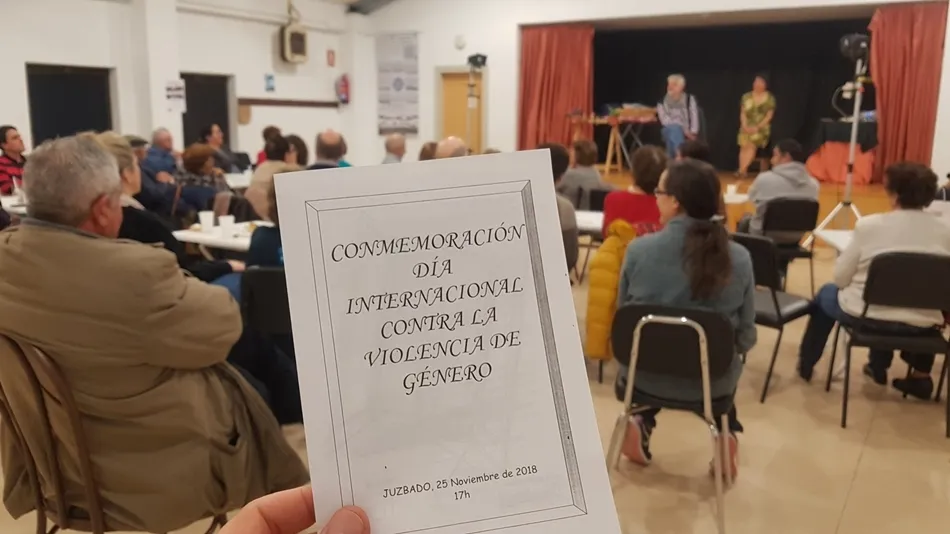 Con motivo de la celebración del Día Internacional contra la Violencia de Género, la Asociación de Mujeres de Juzbado organizó un café teatro en el salón de actos del Ayuntamiento. La compañía salmantina Chirimbamba, en su particular formación Telaraña Teatro, interpretó la obra ?La Mujer sola?, de Franca Rame y Darío Fo, un monólogo de 40 minutos en la que dos mujeres conversan sobre su realidad más próxima. La función estuvo aderezada con un café con pastas en un inusual salón llenos de sillas y mesas dispuestas a modo de salón para la ocasión.