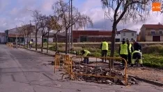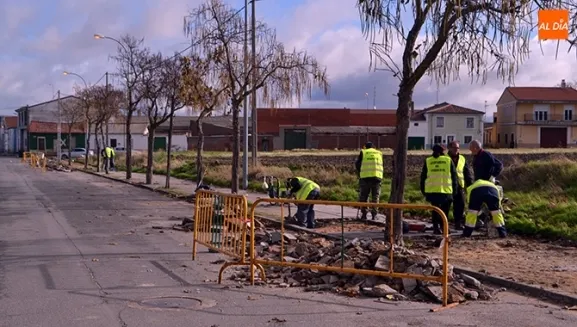 Trabajadores del Ayuntamiento, seleccionados dentro del Programa INEM Corporaciones Locales, han iniciado este lunes su actividad en uno de los principales objetivos del plan de trabajo establecido como son los acerados de la Ronda San Lázaro.