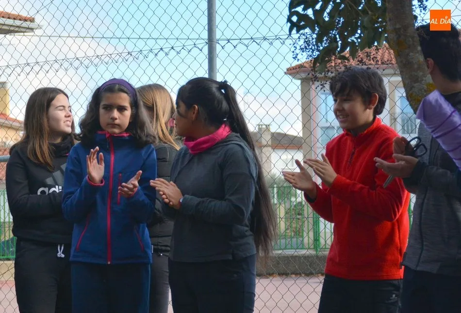 Los alumnos del IES Tierras de Abadengo y del colegio de primaria Liminares han participado en un acto a favor de la eliminación de la violencia contra la mujer, celebrado al mediodía de hoy en el patio del recinto escolar.