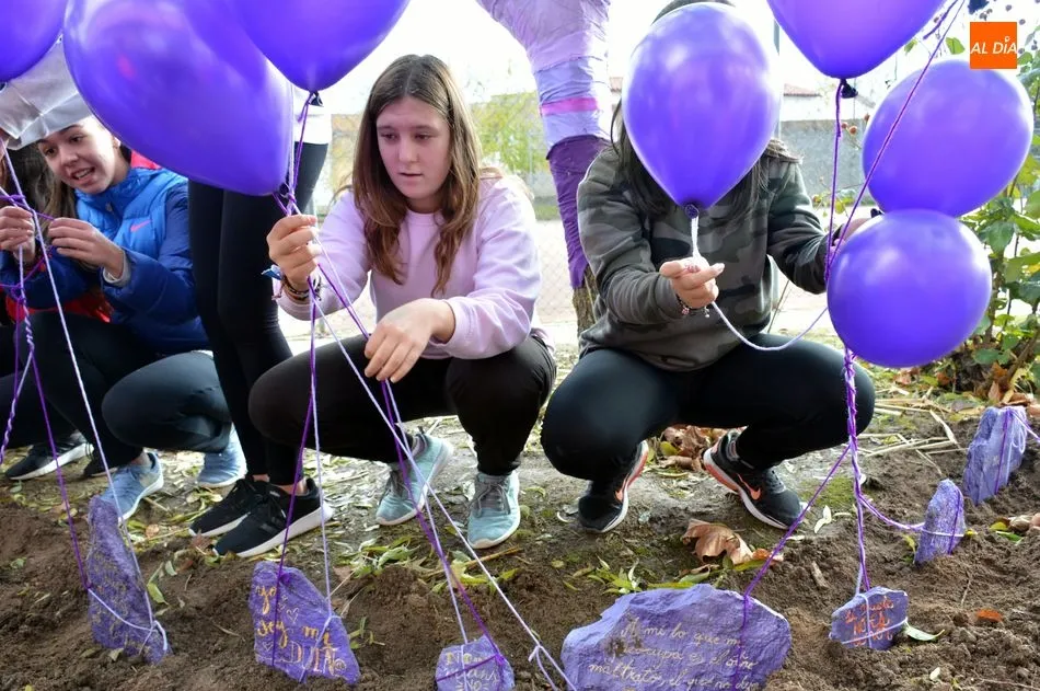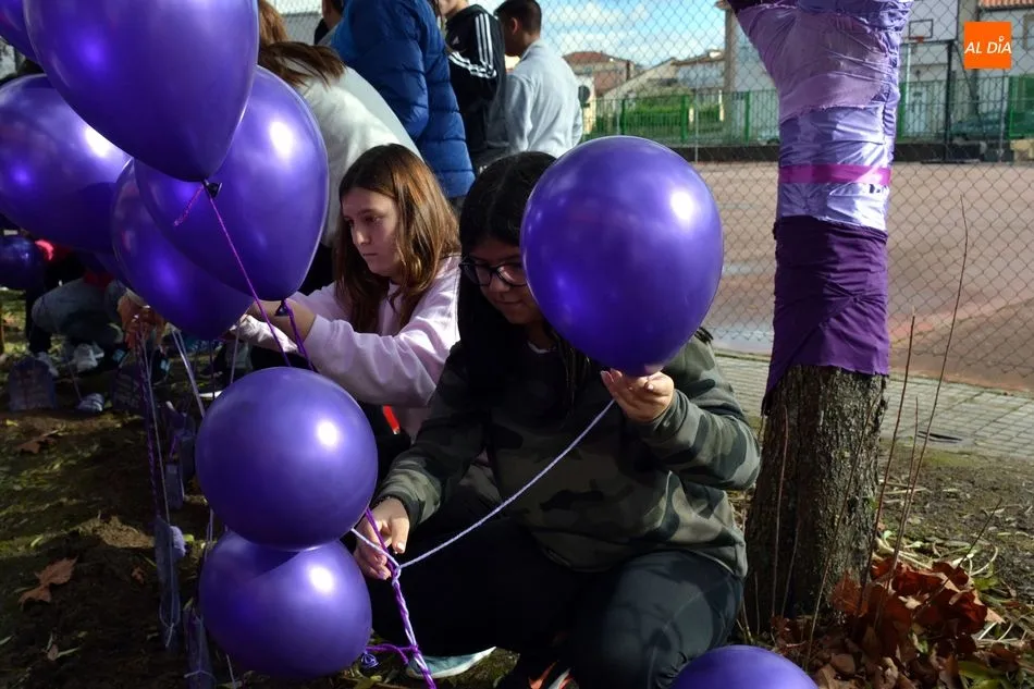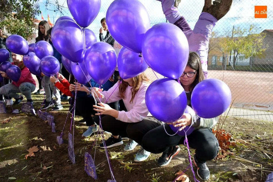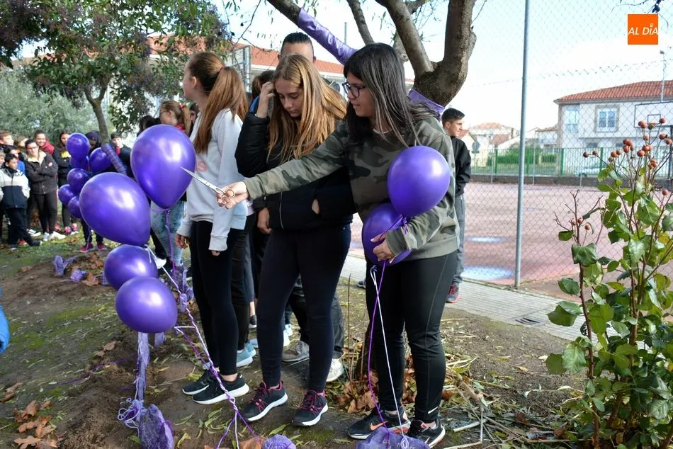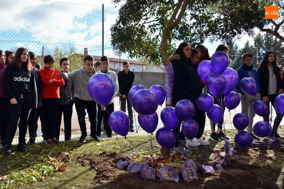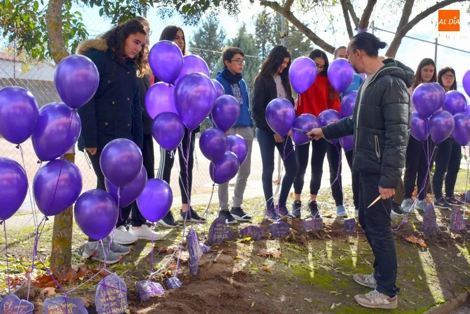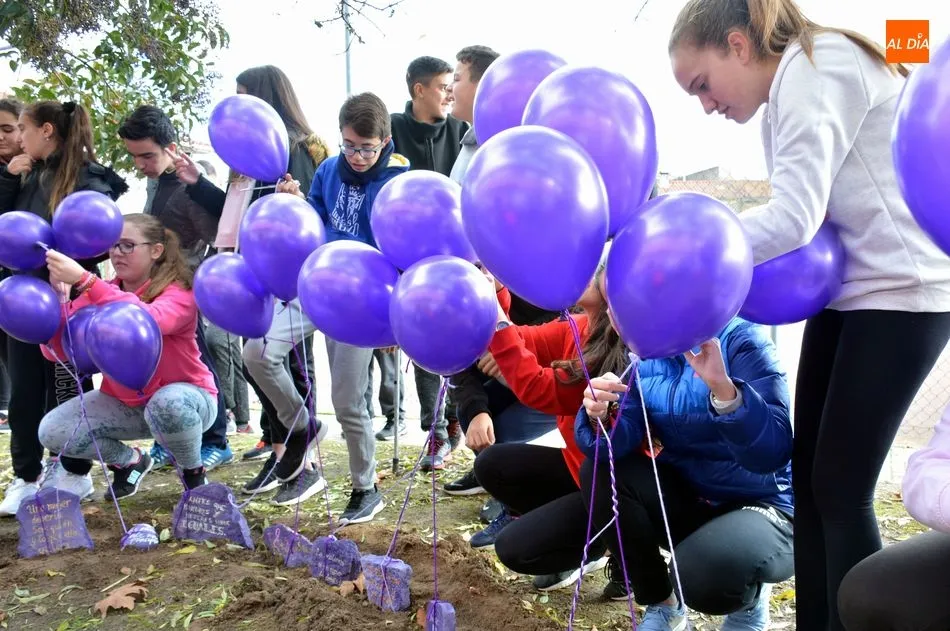 Los alumnos de 3º y 4º de ESO fueron leyendo los mensajes que ellos mimos habían escrito en las pequeñas losas y a continuación los pequeños de la primaria iban cortando los hilos que sujetaban cada uno de los 45 globos, que se elevaban al cielo, una bonita y emotiva imagen de recuerdo a las mujeres asesinadas. Los aplausos cerraron este acto, programado por los dos centros escolares de Lumbrales con motivo del Día Internacional de la Eliminación de la Violencia contra la Mujer.