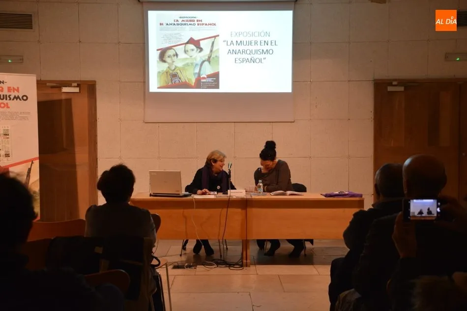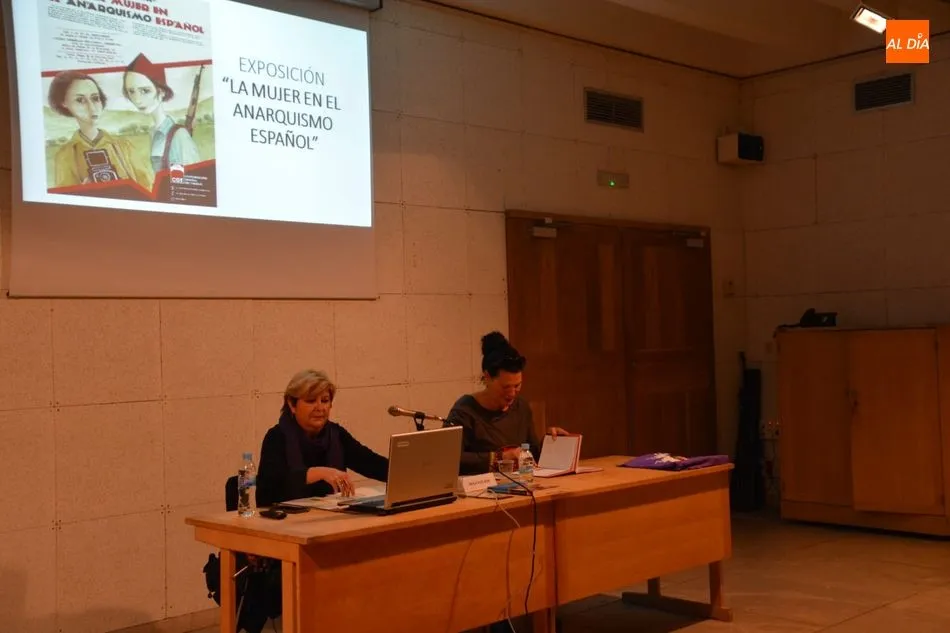 La Casa de las Conchas acogió este lunes una nueva conferencia impartida, esta vez, por la secretaria Confederal de la Mujer de CGT, Paula Ruiz Roa. La jornada, que recibió el nombre ?La Mujer en el Anarquismo Español?, dio respuesta a la necesaria demanda de visibilización de la mujer anarquista, para reconocer el protagonismo que la mujer ha tenido en la historia del anarquismo, y más concretamente en el anarquismo español. La entrada ha sido libre hasta completar aforo.