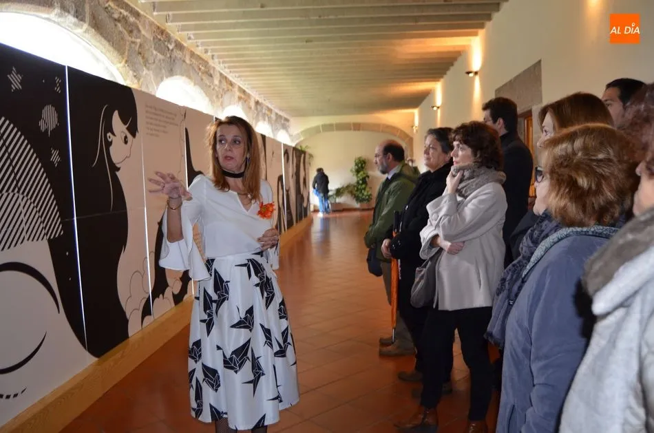 La Vicerrectora, ha agradecido al Alcalde que haya facilitado la instalación de esta exposición en Béjar, ha presentado a la autora del relato, Ester B. Brío, catedrática de Economía y Senadora. Ha valorado que una persona tan ocupada como ella y con tantas obligaciones haya tenido tiempo para reflexionar sobre este tema y trasladarlo a los demás y ha mencionado también la colaboración de Pilar Vega, autora de las ilustraciones.