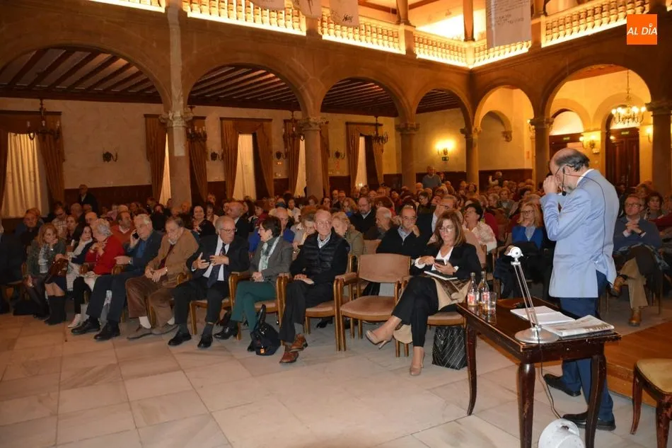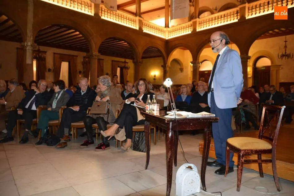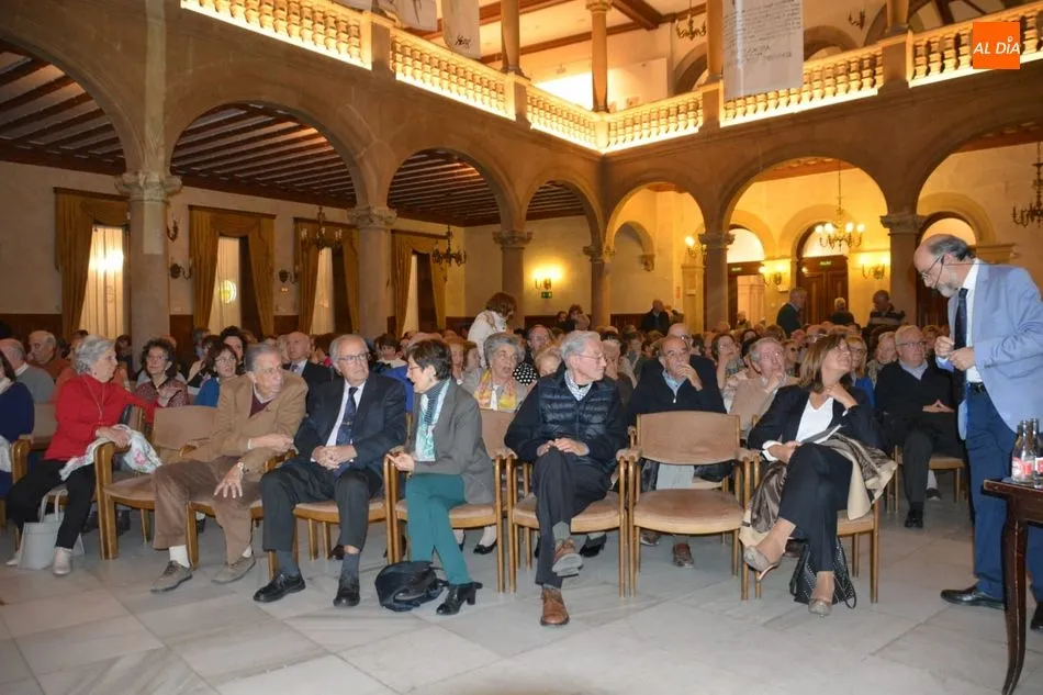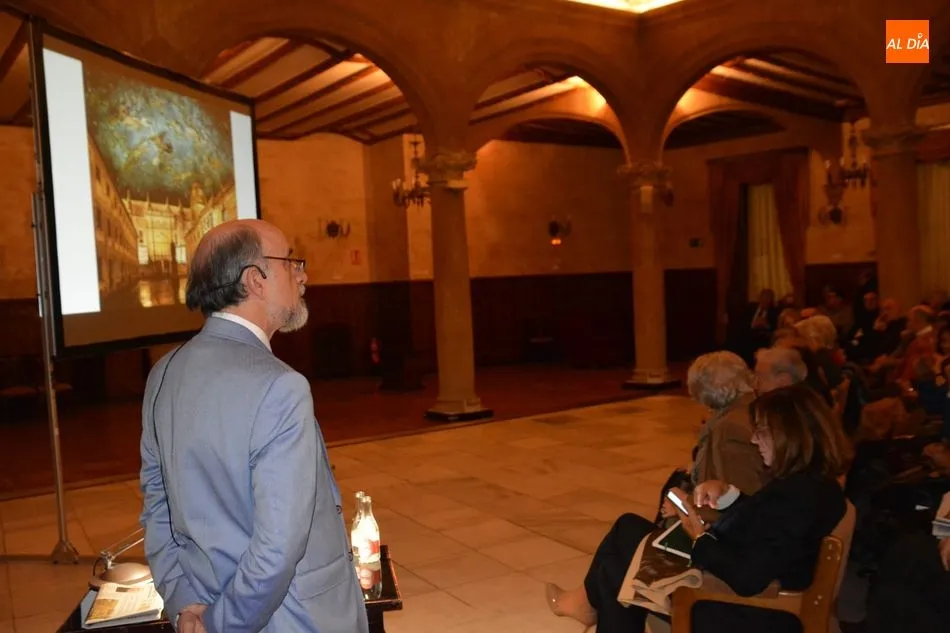 El Casino de Salamanca acogió este lunes una conferencia a cargo de Vicente Sierra Puparelli. El socio del centro ofreció una jornada en la que se adentró en los aspectos más curiosos e importantes de la Universidad de Salamanca, empezando por la fachada, sobre la que ofreció los detalles más notables y también desconocidos. Tras abordar los entresijos del frente de este edifico histórico, Puparelli no se olvidó tampoco de hacer un recorrido por el interior de la universidad, sin olvidarse de Unamuno, Fray Luis de León, el Paraninfo y algunos aspectos históricos destacados.
