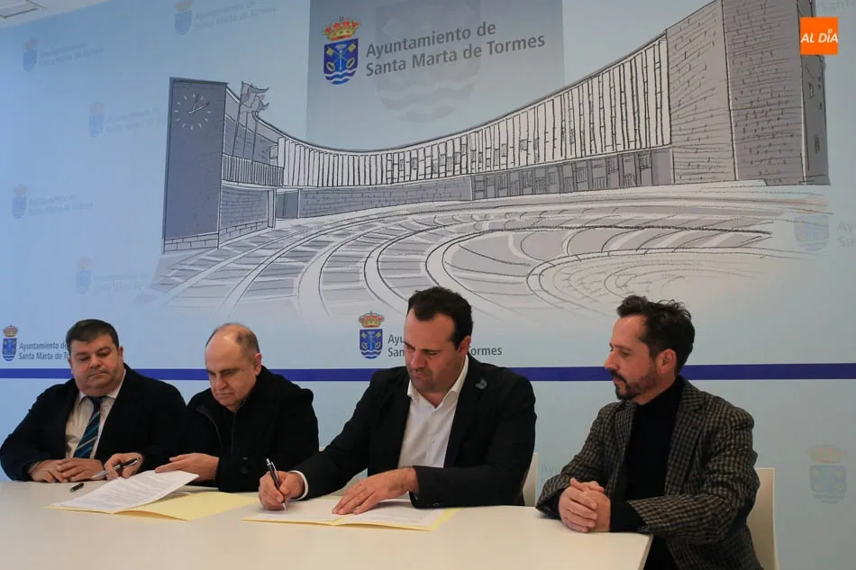El alcalde de Santa Marta, David Mingo, y el director del Instituto Universitario de Investigación en Arte y Tecnología de la Animación de la Universidad de Salamanca, José Fuentes, han firmado este martes un acuerdo de colaboración para coordinar y definir un marco de colaboración conjunta que facilite la dinamización del arte y con el ello se promueva el acercamiento también de la cultura al municipio.