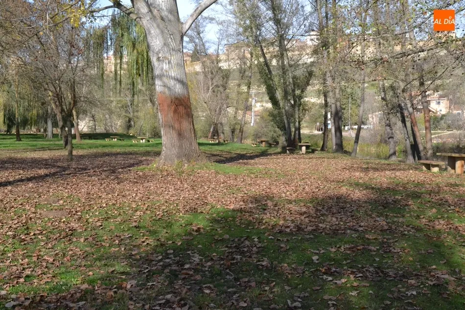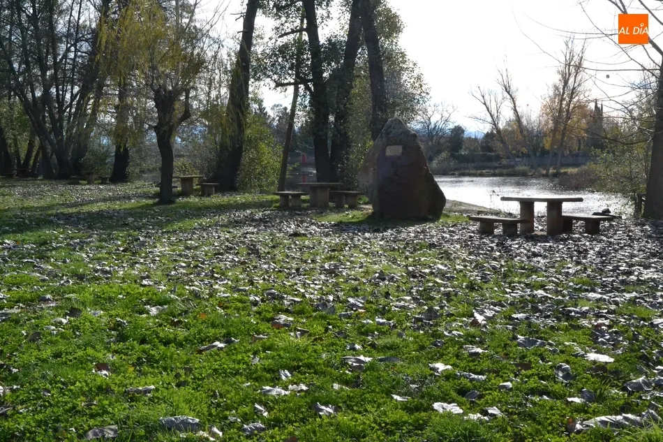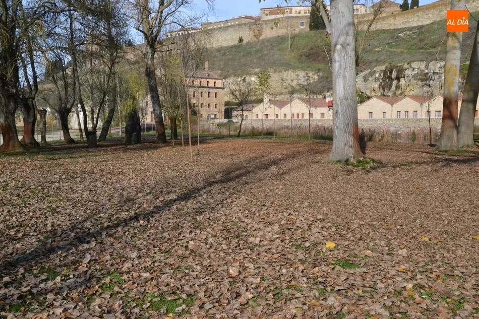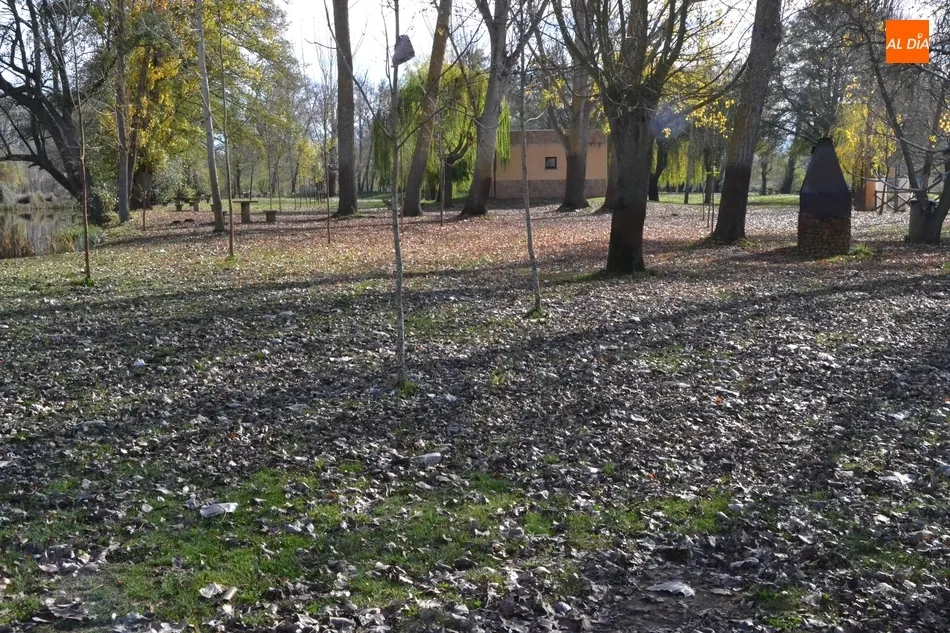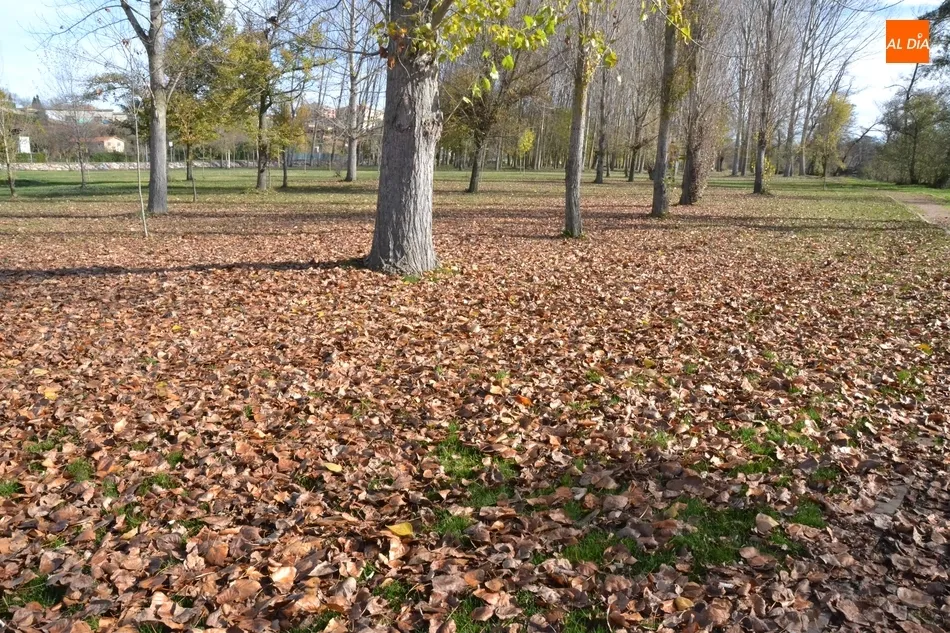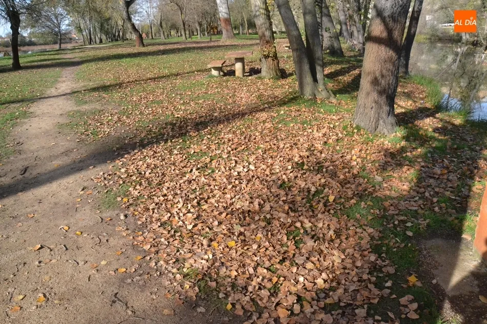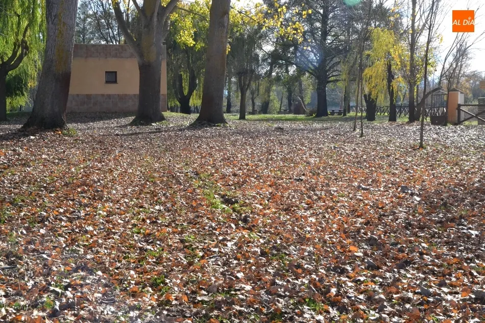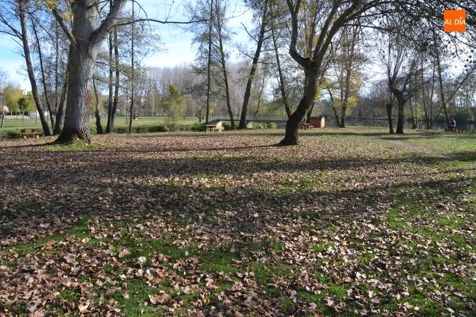 La isla de El Picón de Ciudad Rodrigo se ha ido vistiendo poco a poco de otoño en las últimas semanas, con buena parte de los árboles despojándose de sus hojas, que han ido cayendo al suelo conformando un gran manto de color ocre.