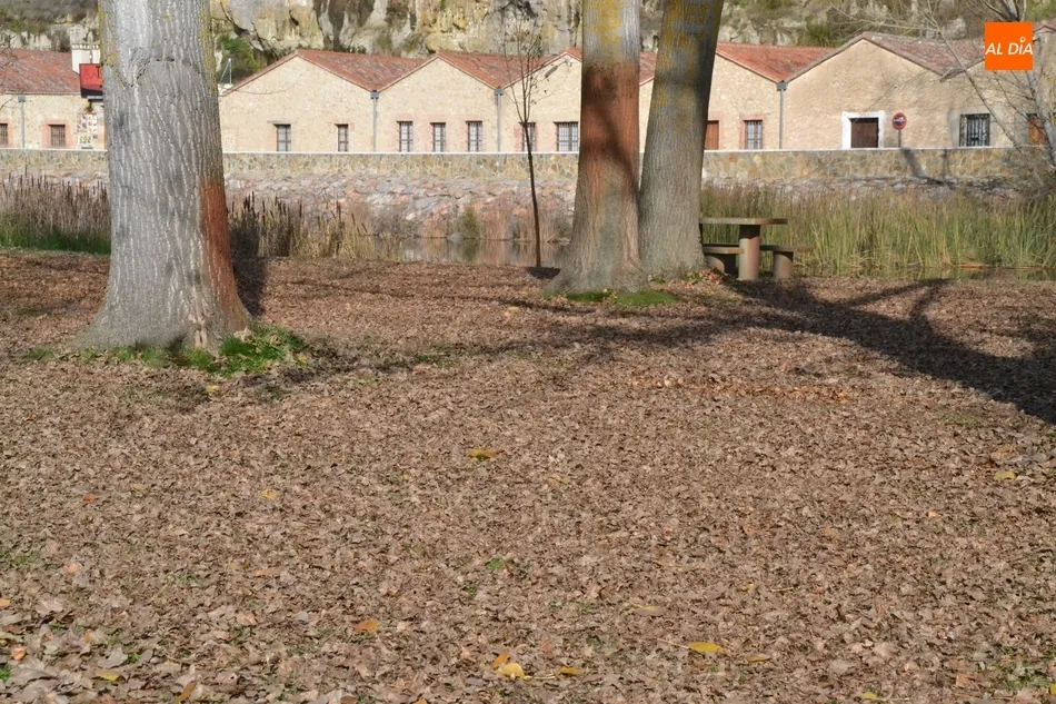 En la zona anexa al parking de La Pesquera existe un tramo de alta concentración de hojas caídas en el suelo
