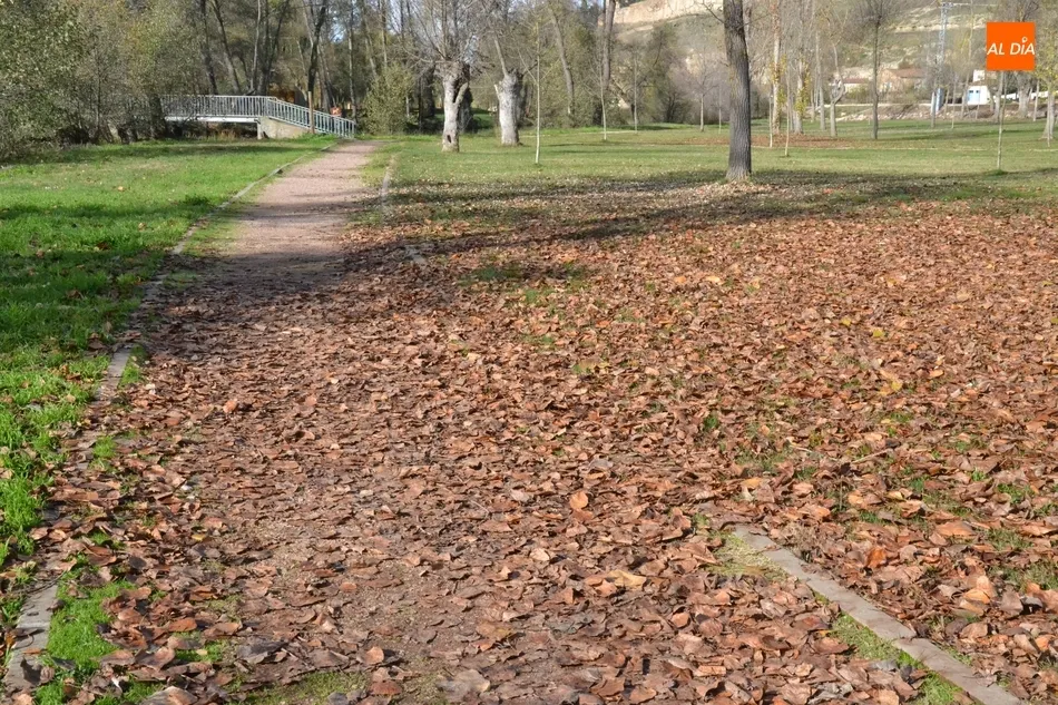 Esta situación es especialmente notable en la zona anexa al parking de La Pesquera, con un tramo que está completamente cubierto de hojas procedentes de varios árboles muy cercanos entre sí, como se puede apreciar a la perfección en la imagen superior, tomada desde la Puerta de Santiago.