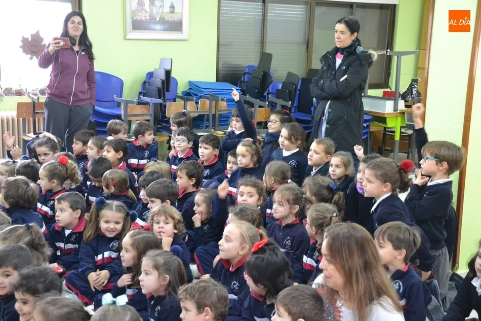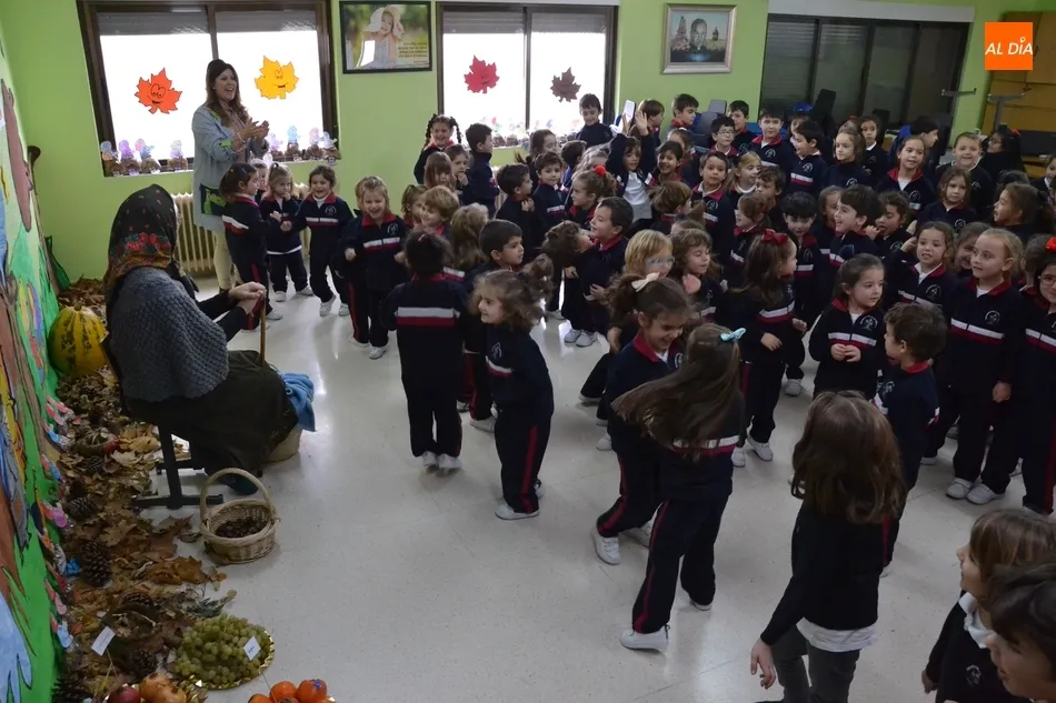 Allí mantuvo el habitual encuentro con los alumnos de Educación Infantil del Colegio, al que también se sumaron los más pequeños de Primaria. Durante el mismo, la Castañera contó un par de historias a los niños, quienes le agradecieron la visita cantando y bailando varias canciones en un gran ambiente festivo.
