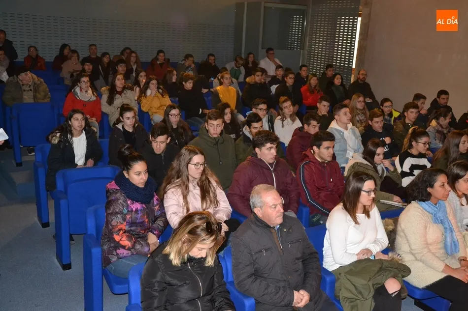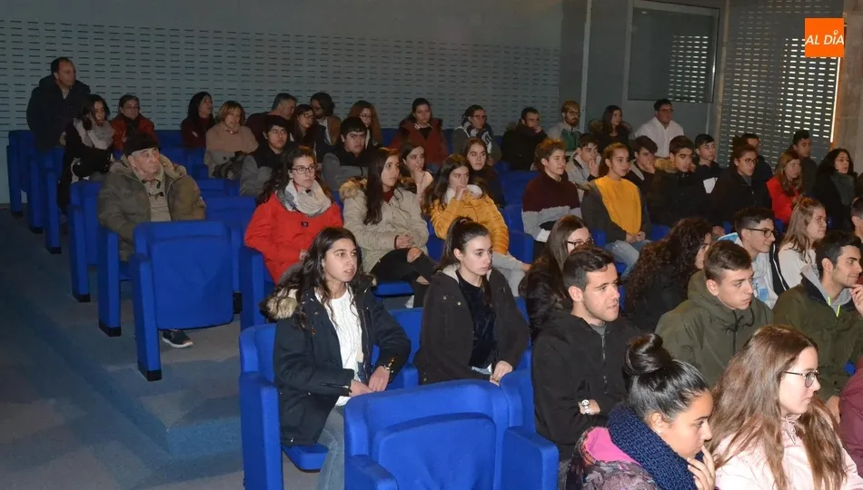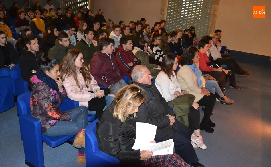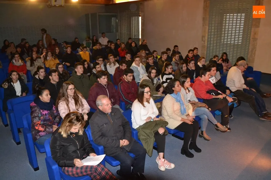 Los alumnos de los cursos superiores del IES Tierra de Ciudad Rodrigo asistieron en la mañana del jueves, en el salón de actos del Palacio de Los Águila, a una mesa redonda de más de hora y media de duración sobre los 40 años de vida de la Constitución Española, que se cumplirán la próxima semana.