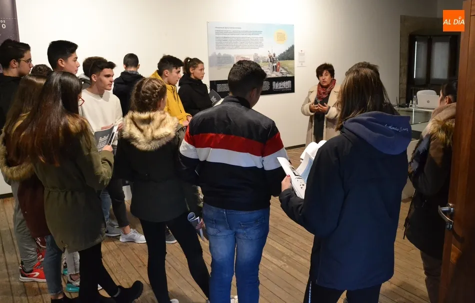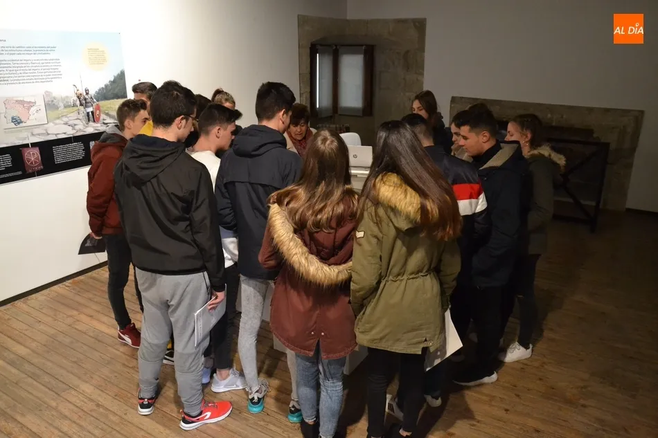La exposición Fortificaciones, poblados y pizarras: La Raya en los inicios del Medievo ubicada en la primera planta del Palacio de Los Águila recibió en la mañana del jueves la visita de un nuevo grupo de estudiantes. En esta ocasión, se trató de un grupo de alumnos de 4º de la ESO del IES Tierra de Ciudad Rodrigo, que acompañados de su profesora de Historia recorrieron la muestra bajo las directrices de la responsable de la misma, Charo Mateos.