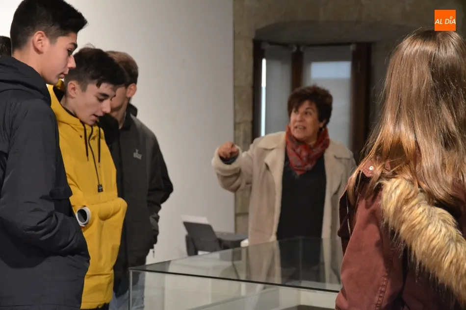La encargada de la muestra, Charo Mateos, guió a un grupo de 4º de la ESO