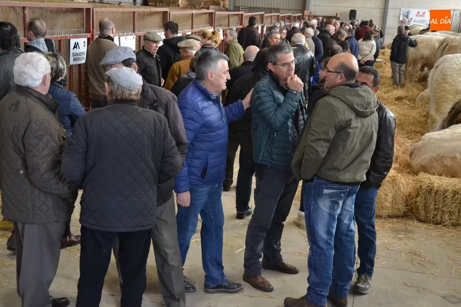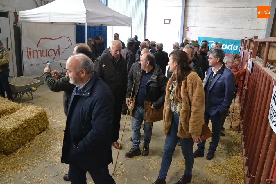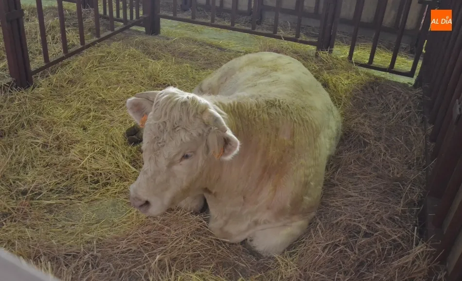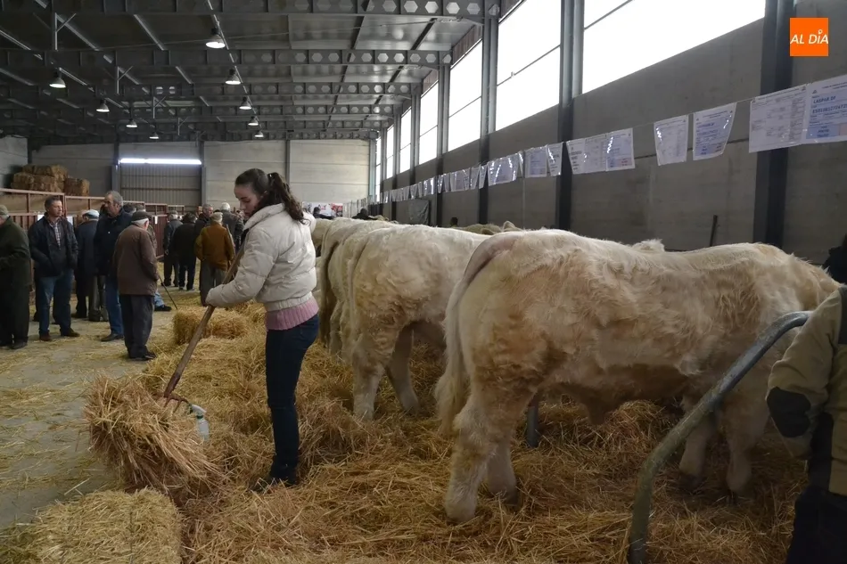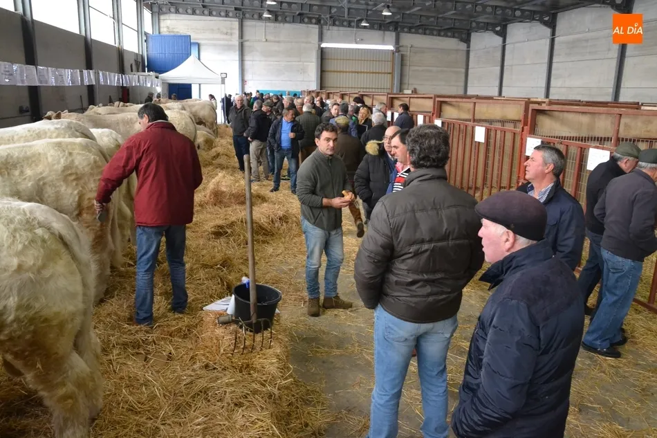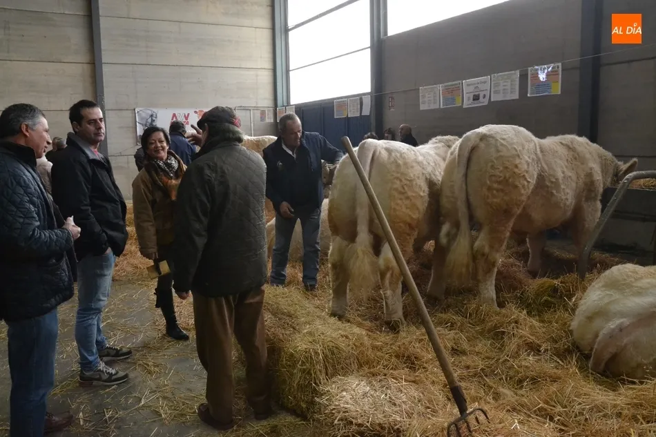 A diferencia de años anteriores, cuando se montaba una carpa en el exterior, este año todo el ganado está dentro de la nave permanente del Ayuntamiento, ocupando prácticamente al completo los boxes con los que cuenta, además de estar desplegado la mayoría del ganado charolés sin boxes en uno de los laterales de la nave, que a media mañana recibió la clásica visita institucional a la Feria.