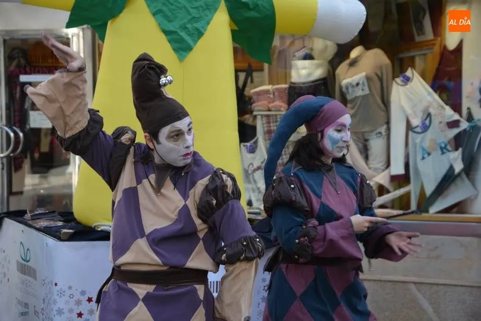 Hoy sábado, a las 12.00, 13.00, 18.00 y 19.00 horas, los Comercilocos se podrán disfrutar en Torres Villarroel, Avenida Mirat, Federico Anaya y Plaza de España, respectivamente; los bufones recorrerán las zonas del Mercado Central y Rúa Mayor, a las 12?00h y 13?00h respectivamente.