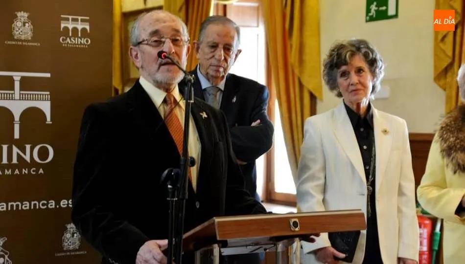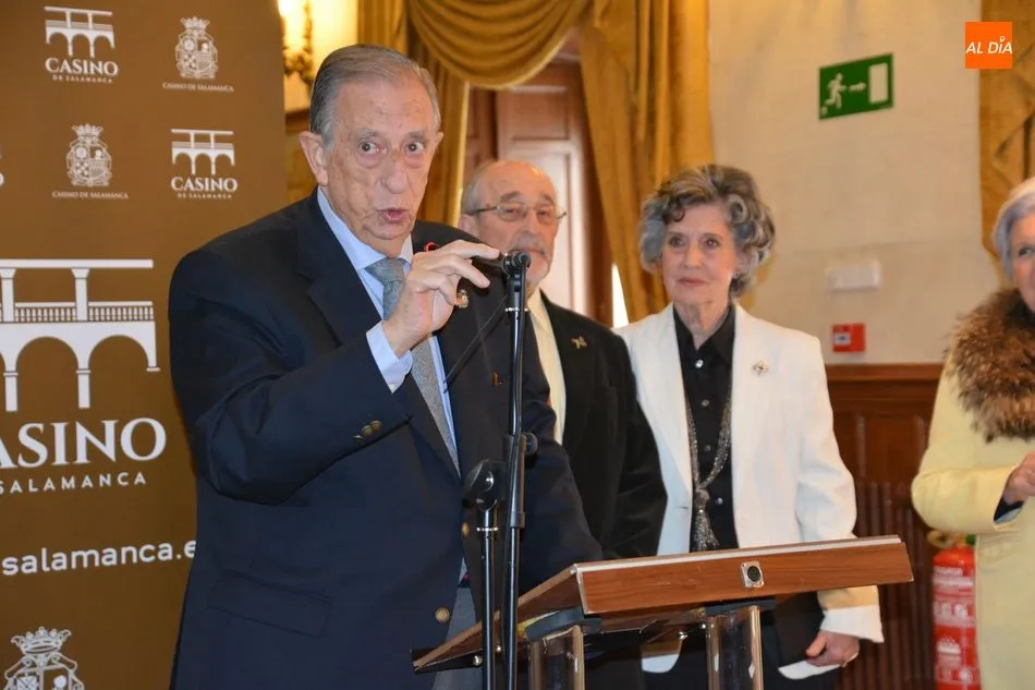 ?Presencia de aquellos pasos? es el título de la propuesta expositiva de Luis de Horna que, desde este sábado, se puede visitar en el Casino de Salamanca. La muestra pictórica se inauguraba esta mañana en un acto en el que destacaron la presencia del propio artista, junto al alcalde de la capital charra, Alfonso Fernández Mañueco, y el presidente del Casino, Alberto Estella, entre otros.