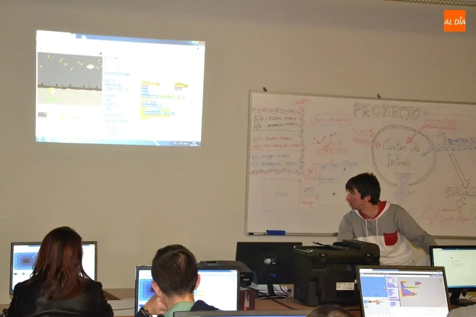 En la tarde del sábado se desarrolló el taller de creación de videojuegos promovido por el Espacio i de Ciudad Rodrigo, que exactamente tuvo lugar en el aula de informática del anexo Centro Empresarial Transfronterizo. En el taller -que era gratuito- participaron una quincena de jóvenes, que aprendieron las nociones básicas en torno a la creación de videojuegos de la mano de otro joven, Alberto Encinas.