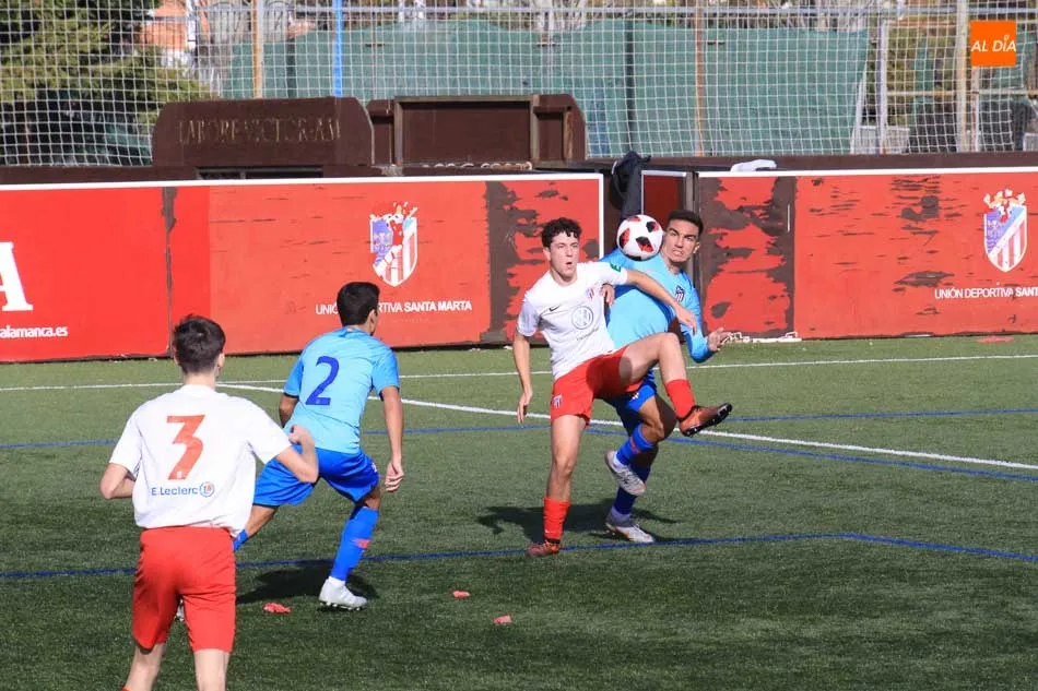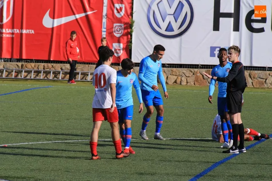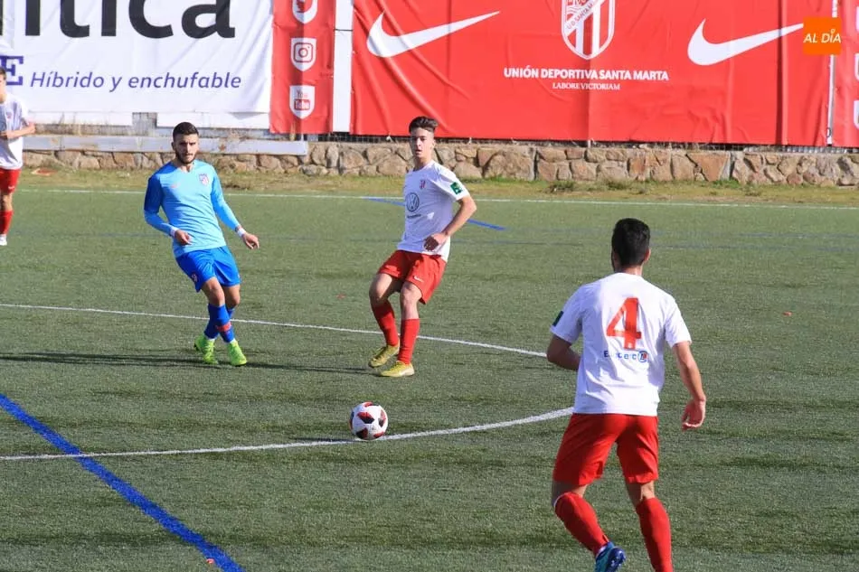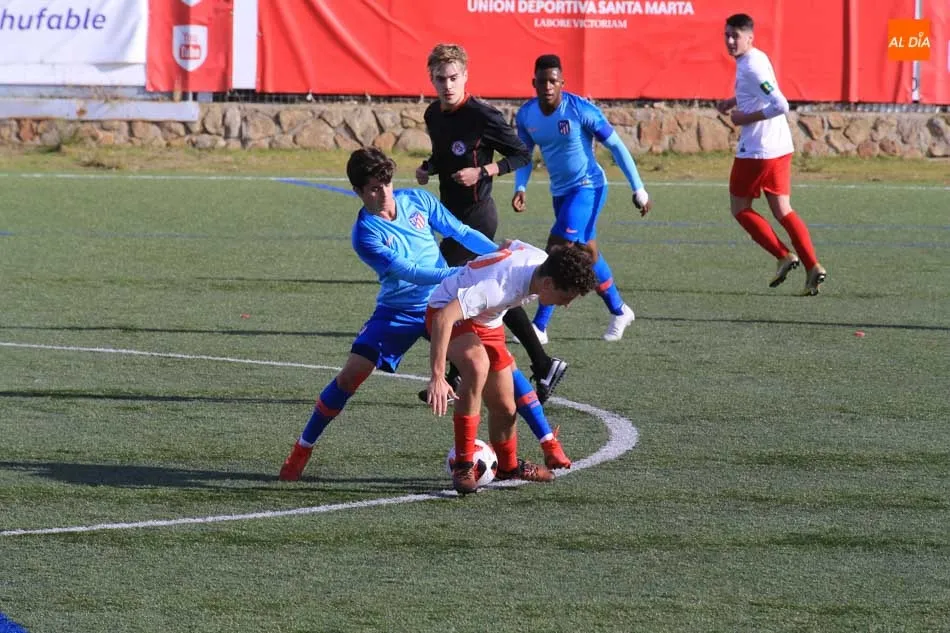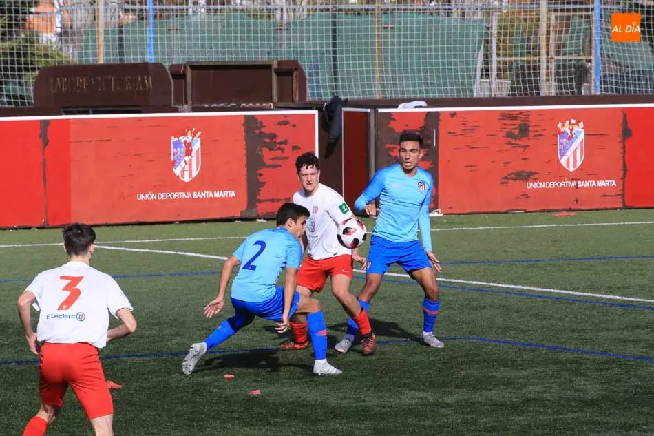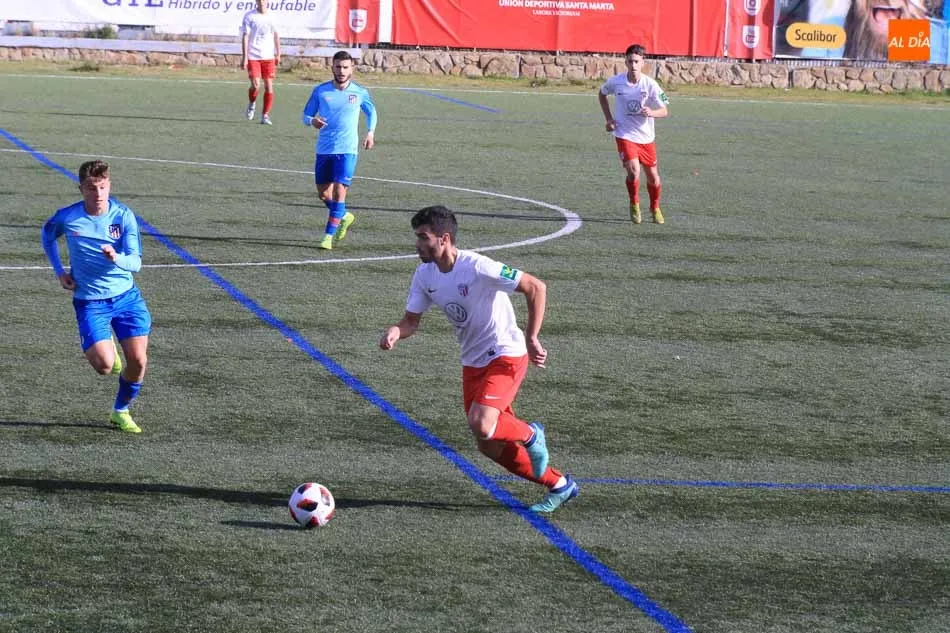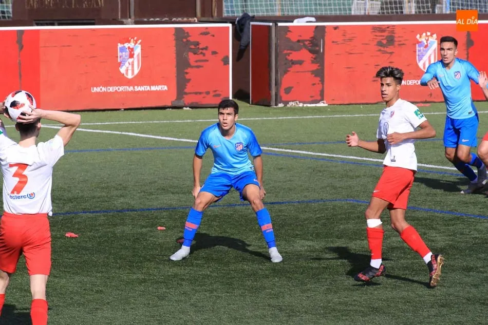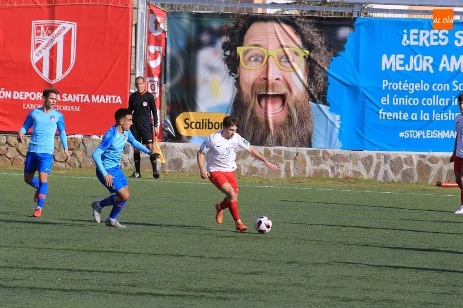 El partido comenzó con bastante igualdad entre ambas escuadras, ya que el Santa Marta gozó de ocasiones de peligro y tuvo bastante controlado al Atlético de Madrid, pero poco le duró la ?alegría? al bando salmantino: Cedric marcó el 0-1 en el minuto 31 de juego y dejó muy tocados a los del San Casto tras protagonizar un gran arranque.