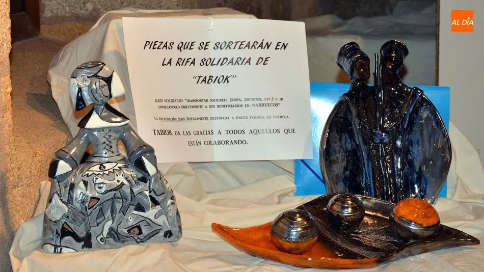 Los promotores del proyecto Tabiok (Carmen y Miguel) están recaudando fondos para adquirir materiales para el raid y Mariasun ha decidido ?poner su granito de arena?. Con ese objetivo ha donado tres piezas de su colección, que serán rifadas entre los compradores de las papeletas puestas a la venta en las exposiciones de San Felices y Lumbrales (del 22 al 29 de diciembre), y además ha puesto a la venta varias de sus obras. ?Siempre me ha costado desprenderme de mis piezas y nunca he vendido una pieza y no voy a seguir vendiendo después de esto? afirma la escultora que explica que el dinero recaudado con las papeletas y las ventas ?va a ir íntegramente para que el proyecto Tabiok sea una realidad? añade.