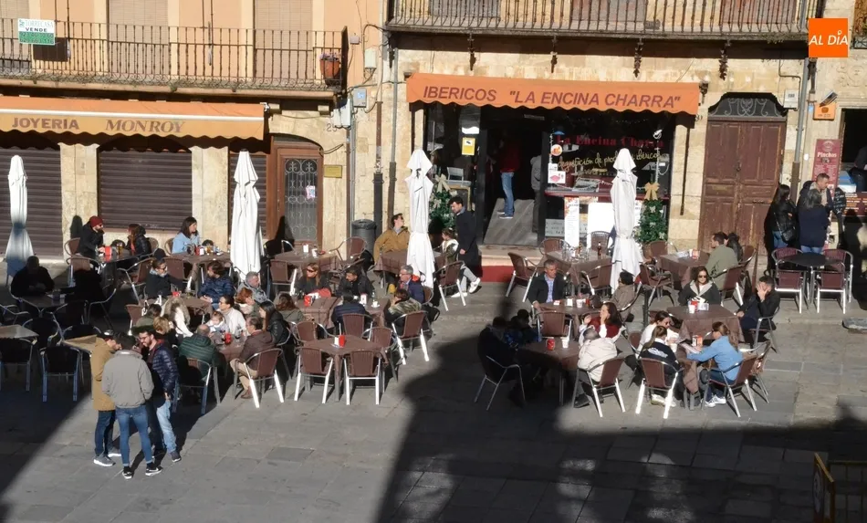 Durante la mañana del jueves, aprovechando el buen tiempo (que parece que se mantendrá durante todo el Puente), se pudo ver a unas cuantas personas sentadas en las terrazas desplegadas en zonas ?de sol?, como en un lateral de la Plaza Mayor o en la calle Laguna. De igual modo, el vecino Parque de La Glorieta recibió a numerosos niños a lo largo de la mañana.