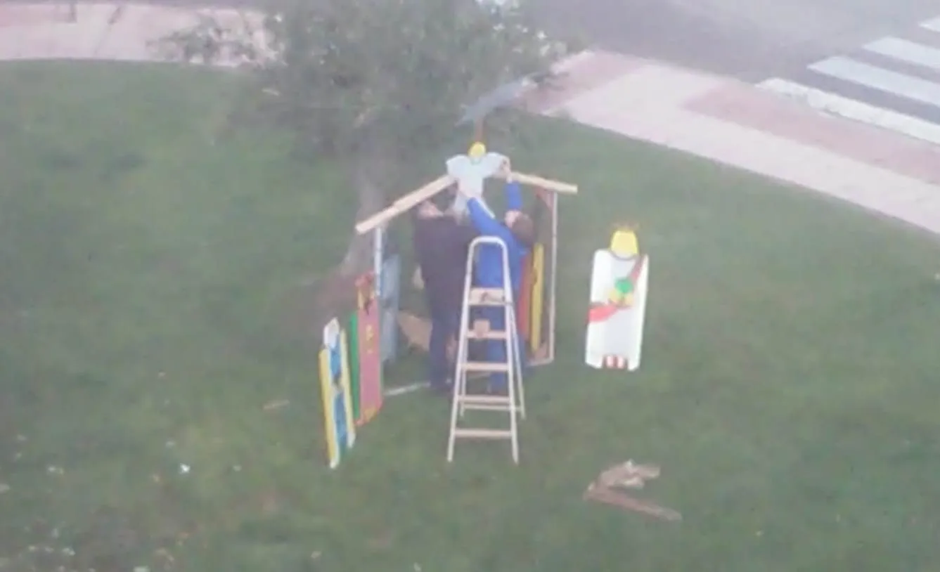 El montaje, que tuvo lugar durante la mañana festiva del jueves entre la niebla con la que despertó Ciudad Rodrigo (que poco a poco se fue levantando), se ha hecho como en años anteriores en la ?desembocadura? de la calle García Lorca en la calle Santa Clara, aprovechando una zona ajardinada.