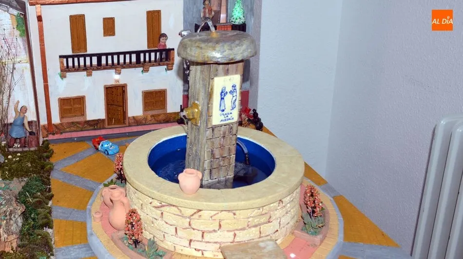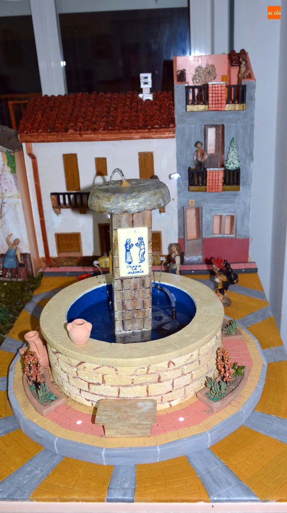 La fuente y los dos edificios de la plaza también son una obra reciente de Pepe Sánchez, un artesano aficioando que lleva años haciendo maquetas en poliespán, siempre enfocadas al Belén navideño.