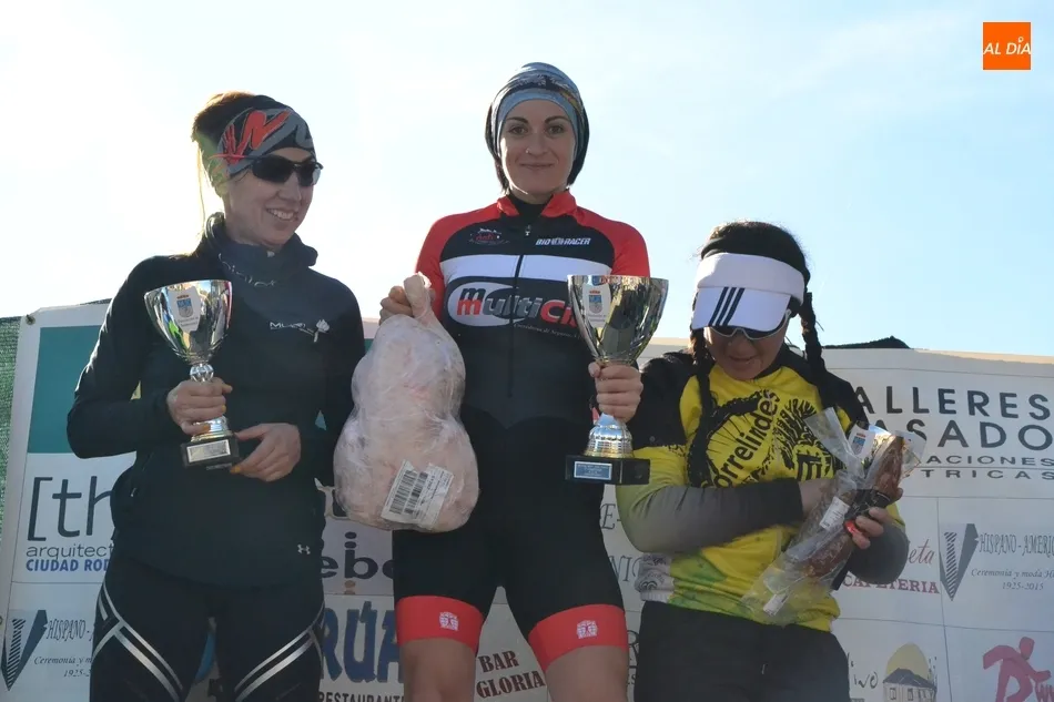 En lo que respecta a categoría femenina, la ganadora fue la ciclista guinaldesa Ainhoa Sánchez Castaño (2ª el año pasado), con un tiempo de 1h.58?41?, también con bastante ventaja sobre la segunda clasificada, que fue la campeona del mundo Dori Ruano, con 2h.09?38?. La tercera clasificada fue María Soledad Martín Corchete, del Correlindes, con una marca de 2h.22?06. Los ganadores tanto en chicos como en chicas se llevaron como premio un pavo donado por Cafetería Anfi.