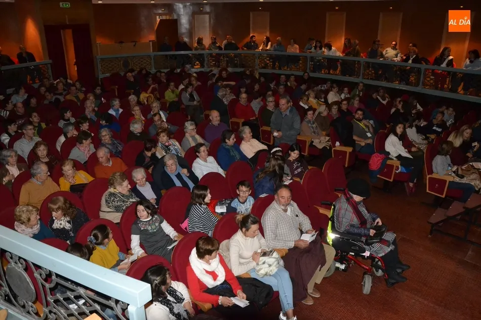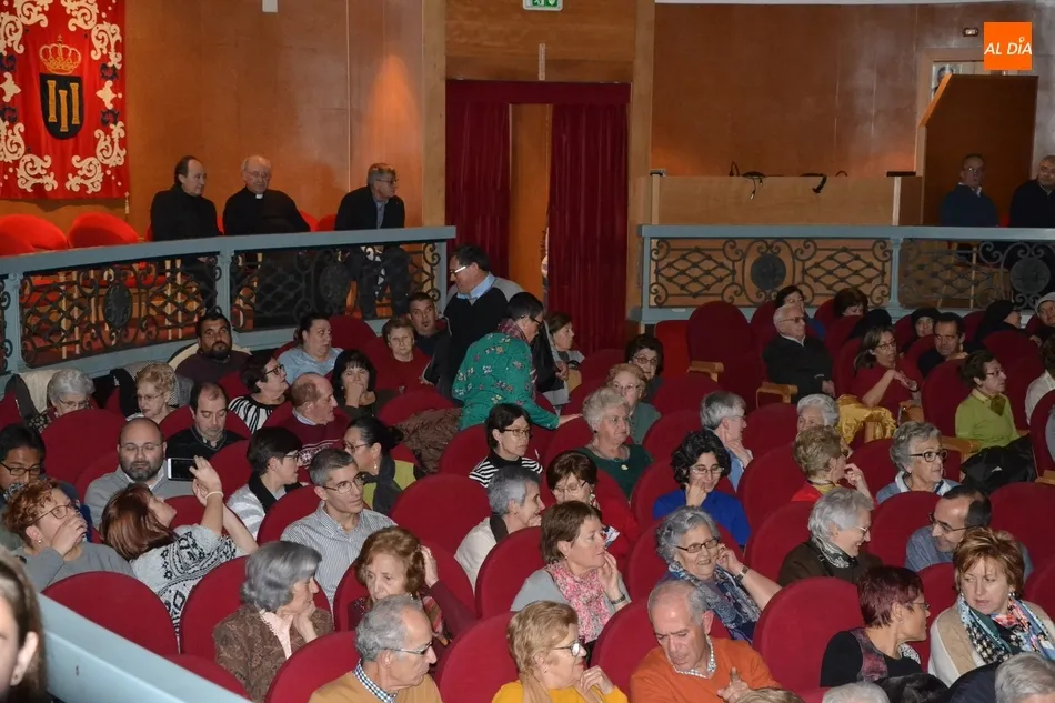 Eso hace que las imágenes que publicamos se limiten al público que se congregó en el Teatro, que se quedó con una media entrada. Entre los asistentes estuvo el Administrador Apostólico de la Diócesis, Francisco Gil Hellín.