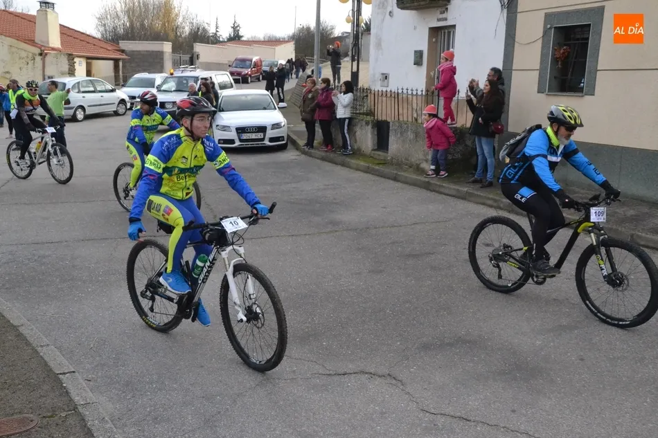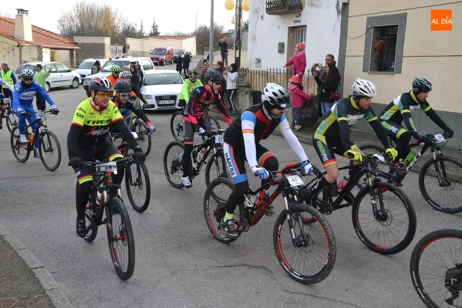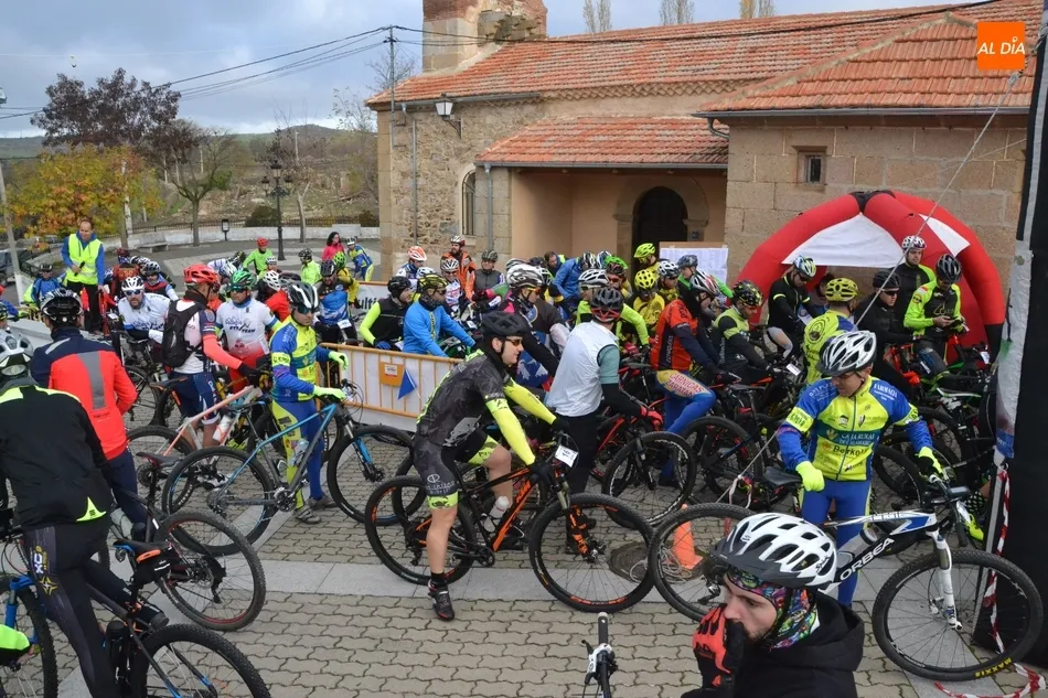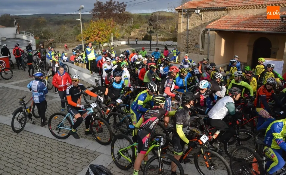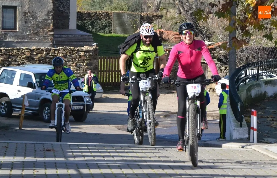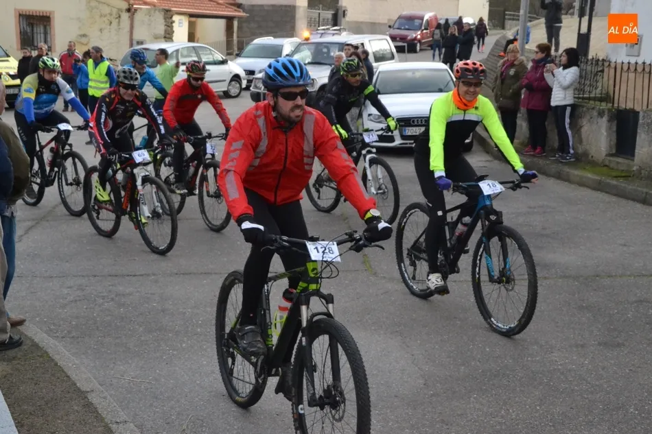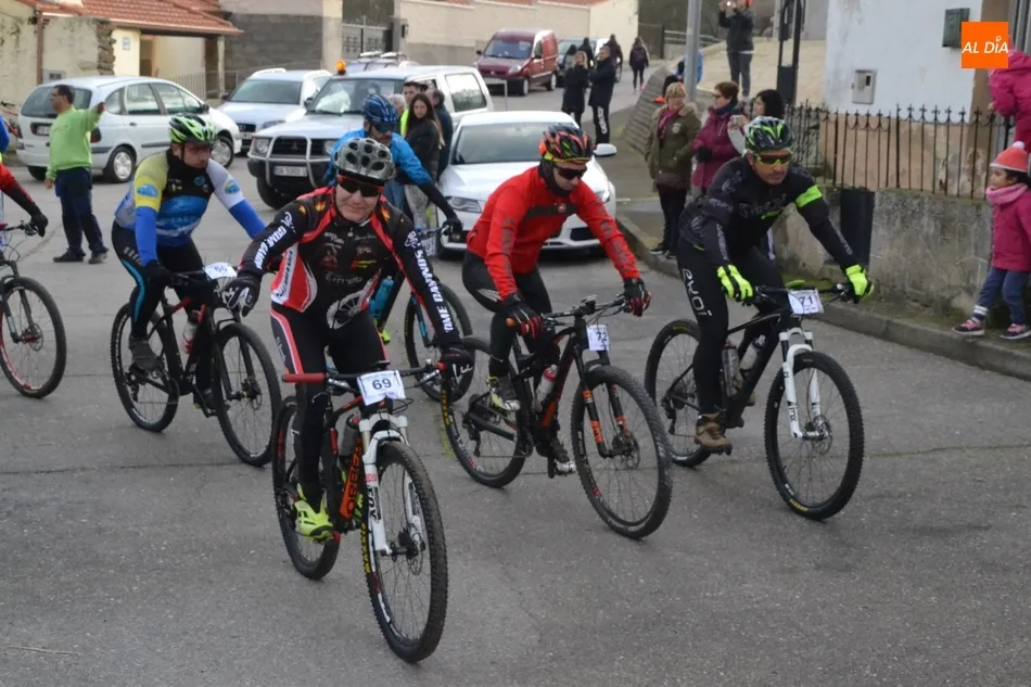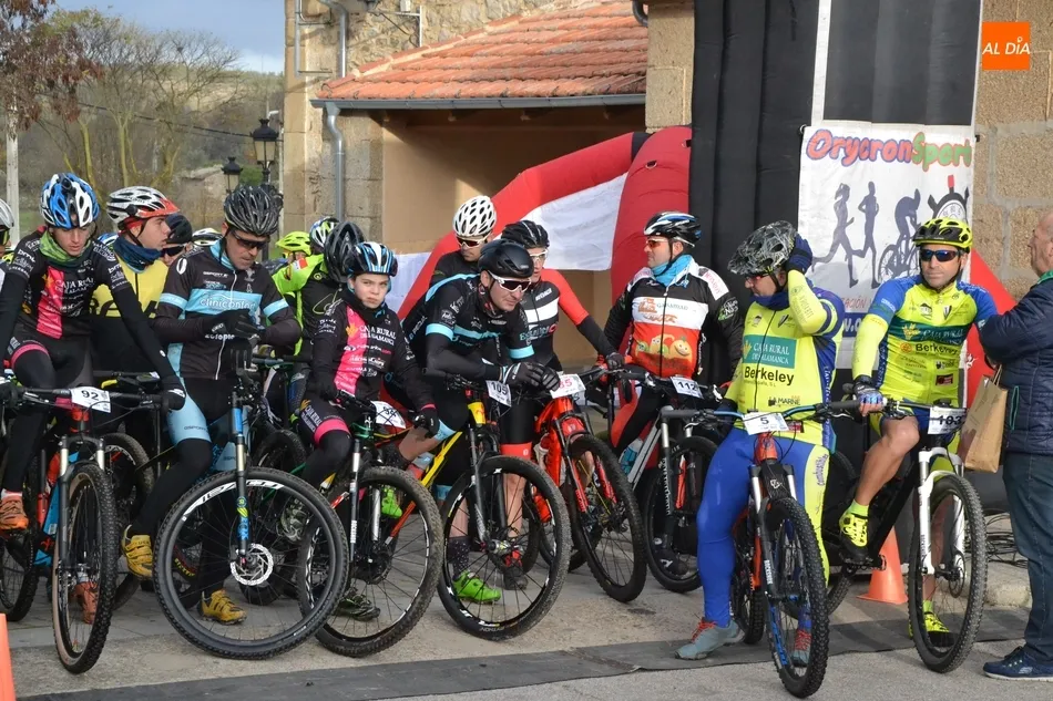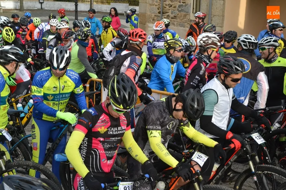 Todos ellos se fueron congregando en la Plaza de Saelices junto al arco plantado al lado de la Casa Consistorial y la Iglesia para afrontar a partir de las 10.00 horas un recorrido de 40 kilómetros (principalmente por el entorno del Río Águeda), que no entrañaban excesiva dificultad salvo 2-3 cuestas muy pronunciadas, dos de ellas situadas en el tramo inicial, que obligaron a poner el pie a tierra a la mayoría de los participantes.