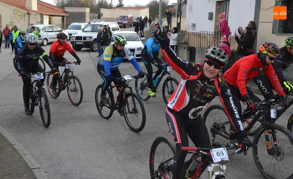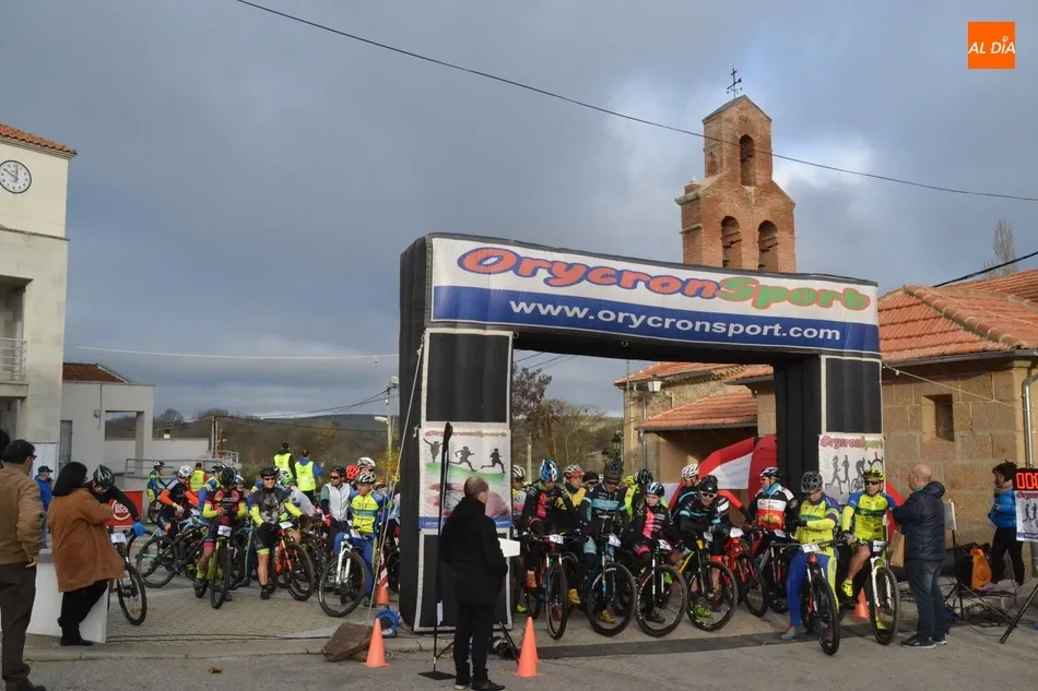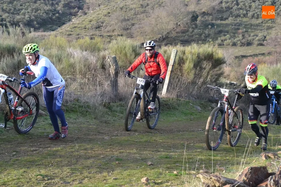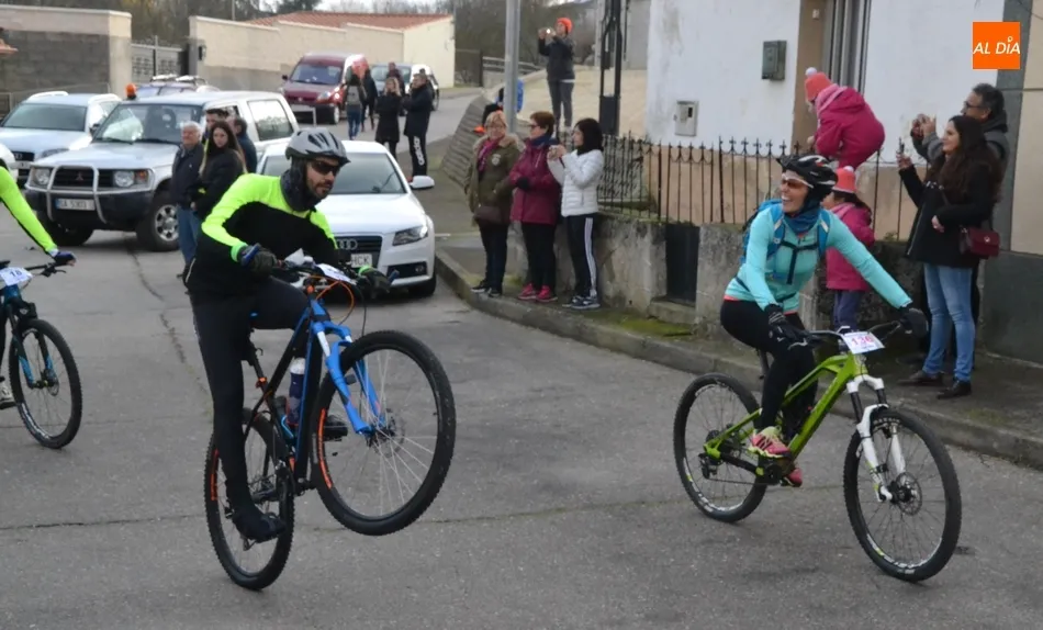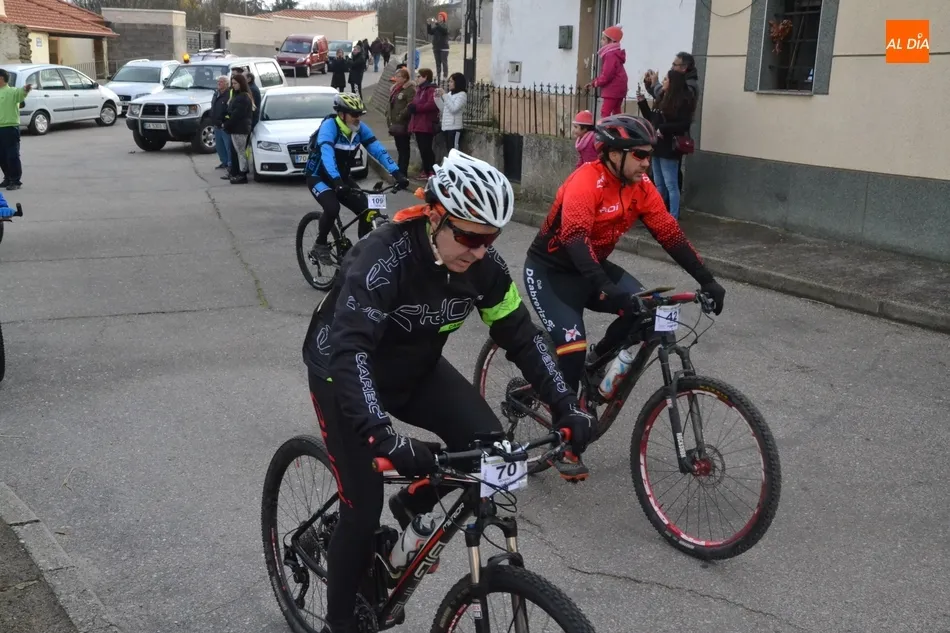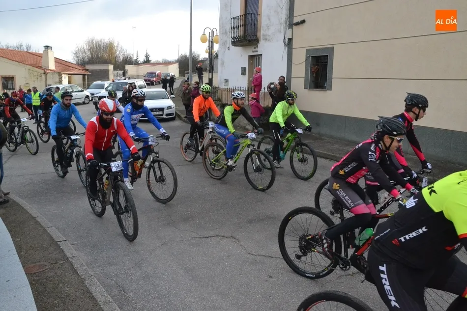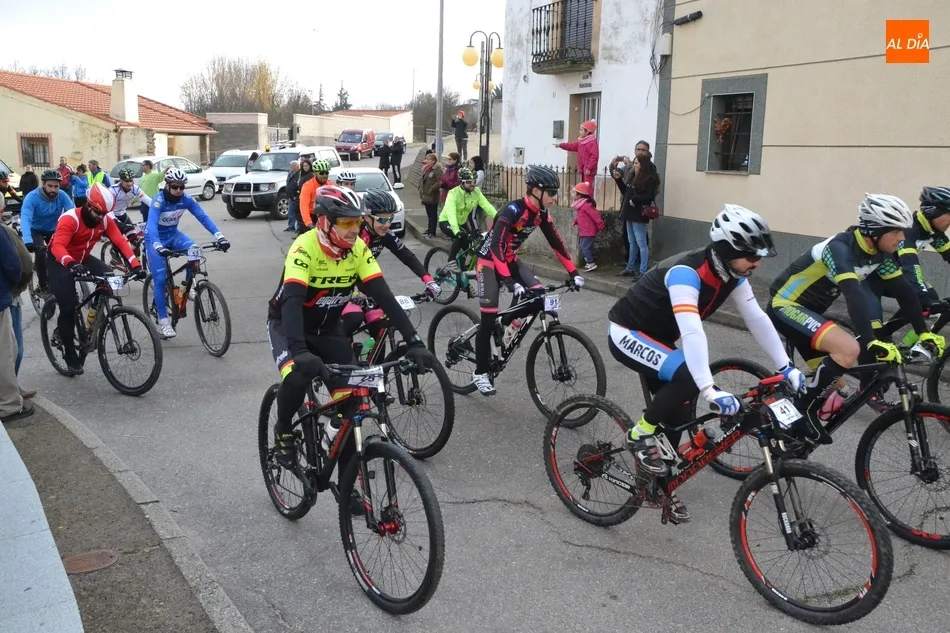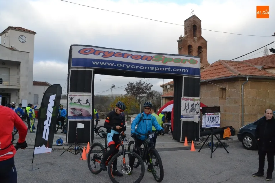 Todos ellos se fueron congregando en la Plaza de Saelices junto al arco plantado al lado de la Casa Consistorial y la Iglesia para afrontar a partir de las 10.00 horas un recorrido de 40 kilómetros (principalmente por el entorno del Río Águeda), que no entrañaban excesiva dificultad salvo 2-3 cuestas muy pronunciadas, dos de ellas situadas en el tramo inicial, que obligaron a poner el pie a tierra a la mayoría de los participantes.