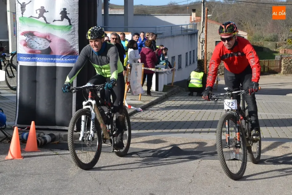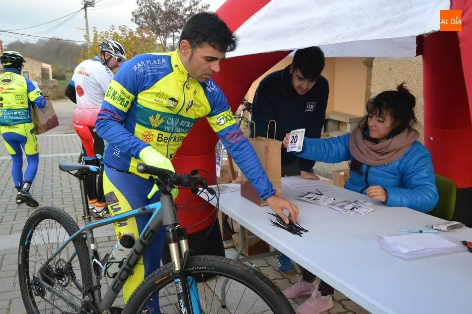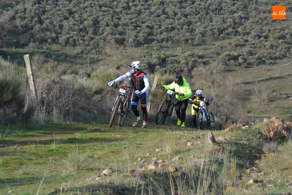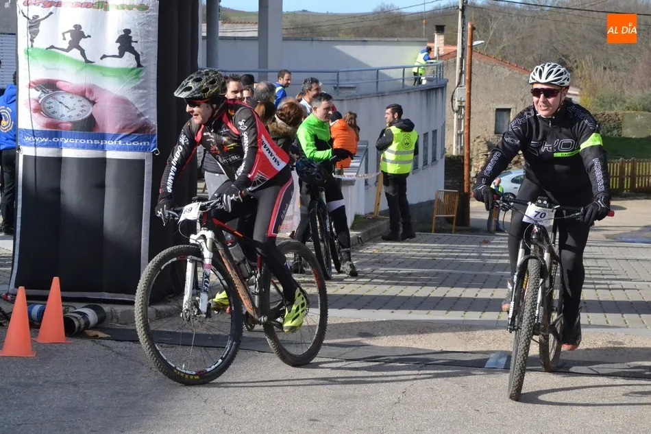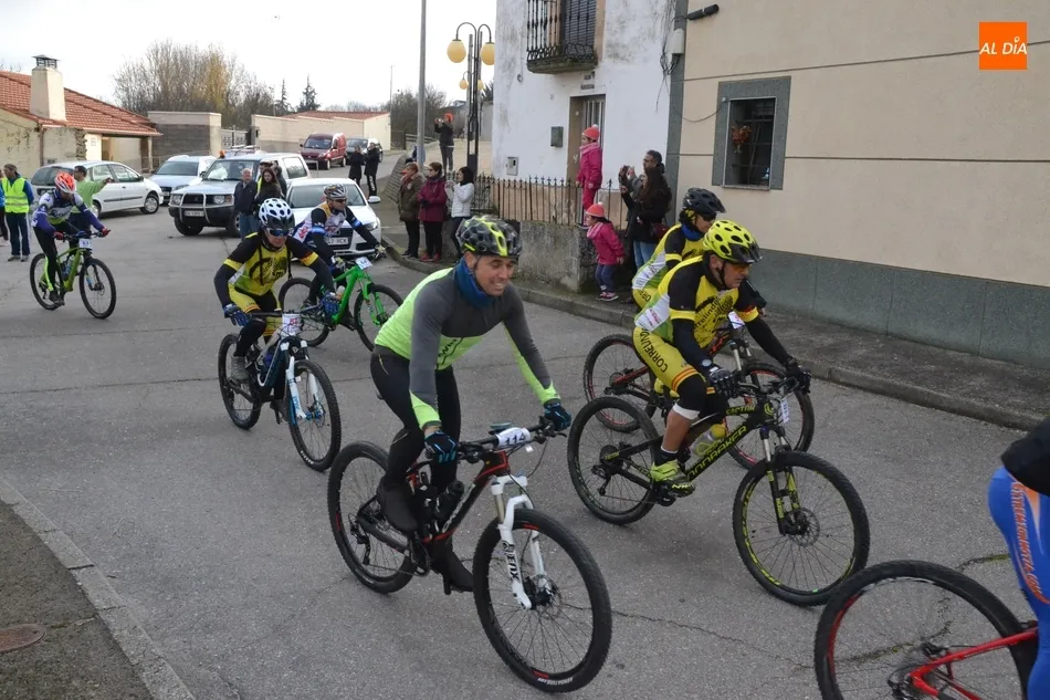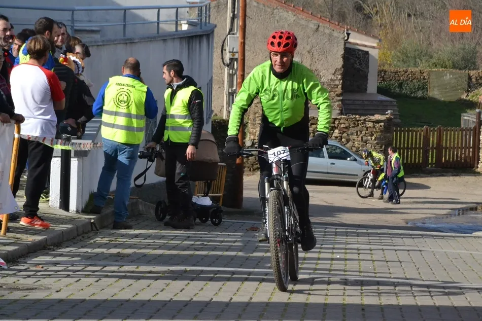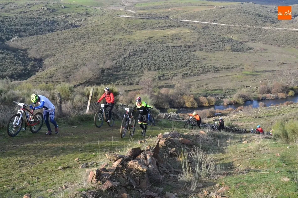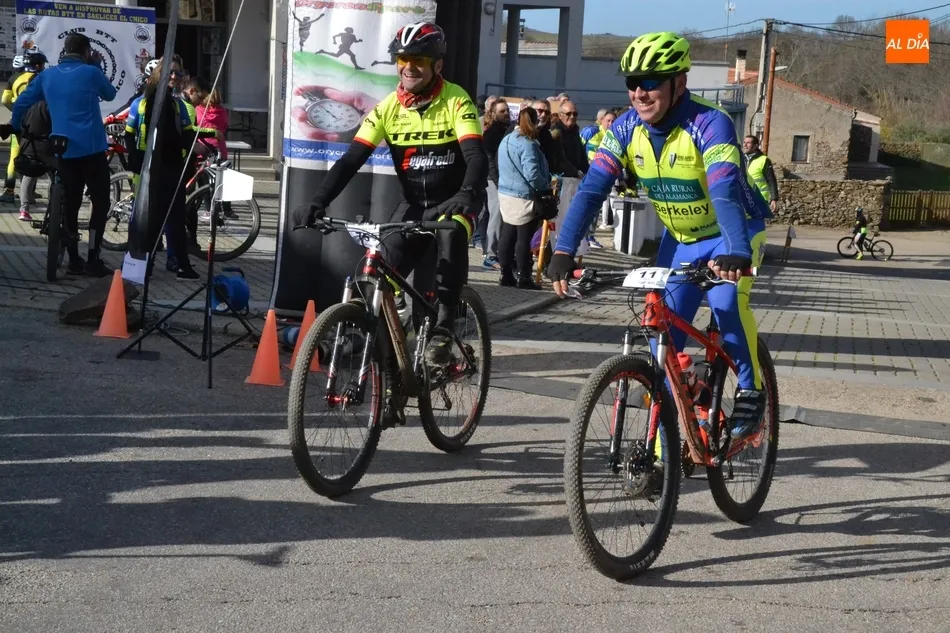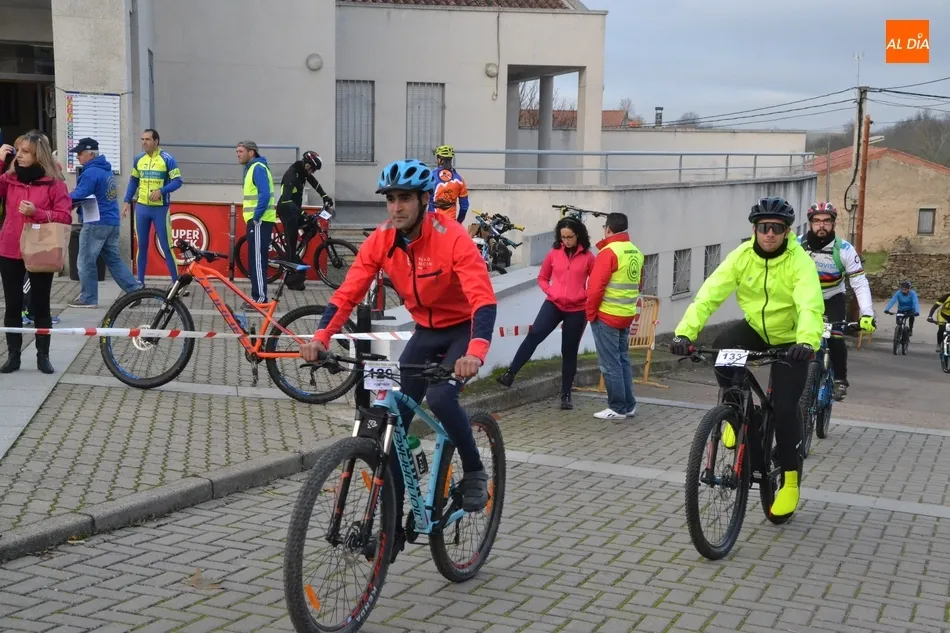 Todos ellos se fueron congregando en la Plaza de Saelices junto al arco plantado al lado de la Casa Consistorial y la Iglesia para afrontar a partir de las 10.00 horas un recorrido de 40 kilómetros (principalmente por el entorno del Río Águeda), que no entrañaban excesiva dificultad salvo 2-3 cuestas muy pronunciadas, dos de ellas situadas en el tramo inicial, que obligaron a poner el pie a tierra a la mayoría de los participantes.