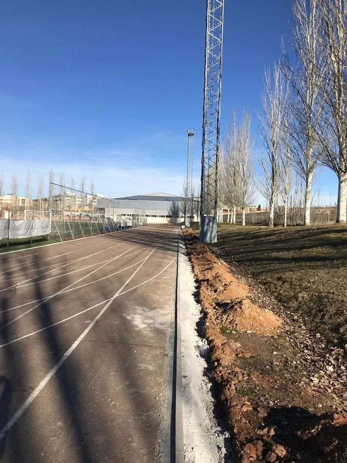 Estas obras tienen por objeto la renovación de la pista de atletismo actual, que no se encuentra en las mejores condiciones para la práctica de carreras. Una vez terminada la base se procederá a realizar un acabado mediante tres capas de pintura con tratamiento deportivo. El marcaje de las pistas se realizará conforme a lo establecido en las normas NIDE de Atletismo del Consejo Superior de Deportes.