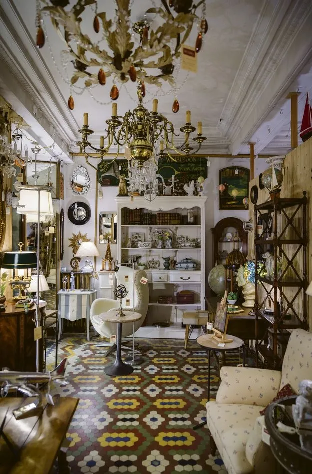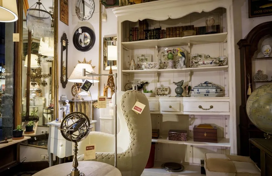 En la tienda de los Huebra hay una luz especial que ilumina muebles, objetos decorativos, colores amables con los que habitar la vida; luz que acaricia la suavidad de la madera, la delicadeza de la porcelana, la originalidad con la que cuelgan del techo, entre las lámparas, los móviles que evocan sistemas planetarios. Tiempo detenido a través del cristal cortado, instante amable y hospitalario que recibe al visitante entre paredes blancas, exquisitas molduras, el suelo como un prodigio geométrico de hexágonos de colores: ?Son baldosas hidráulicas ?nos cuenta Eduardo de la Huebra- antes se ponían de una en una. Este suelo se instaló en los años treinta, y ahí, en la bodega, hubo durante la guerra un refugio contra las bombas?.