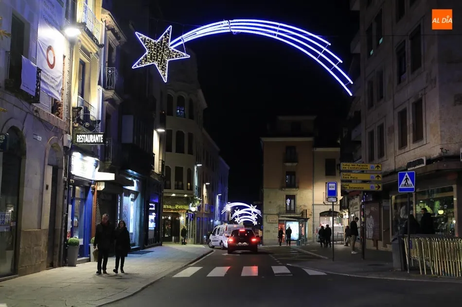 La iluminación ornamental vuelve a ser otro de los grandes atractivos en la ciudad en estas fechas. El pasado viernes dio inicio la iluminación, que llegará a la práctica totalidad de todos los barrios de la ciudad de Salamanca. Ochenta calles, plazas y glorietas lucen ya iluminación navideña con motivos en farolas y arcos. Este año, como novedad, los arcos de ?Felices Fiestas? se sustituirán por estrellas iluminadas en tres dimensiones con luz blanca en las entradas a la ciudad (glorietas Leonardo da Vinci, Santiago Martín ?El Viti? y Vettones y Vacceos ).