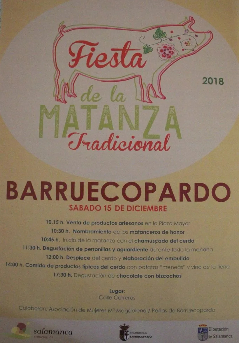 El Ayuntamiento de Barruecopardo tiene todo dispuesto para celebrar el próximo sábado, 15 de diciembre, una nueva edición de la Matanza Tradicional, evento que tendrá como matancera de honor a la vicepresidenta de la Diputación, Chabela de la Torre, un cargo que compartirá con diputado de Agricultura, Román Hernández; el tamborilero local, Leonardo Alburquerque; y con las peñas El Coco y Láser.