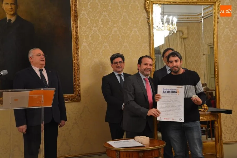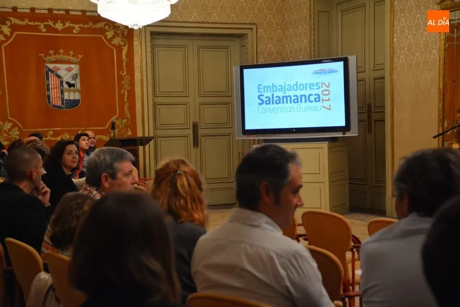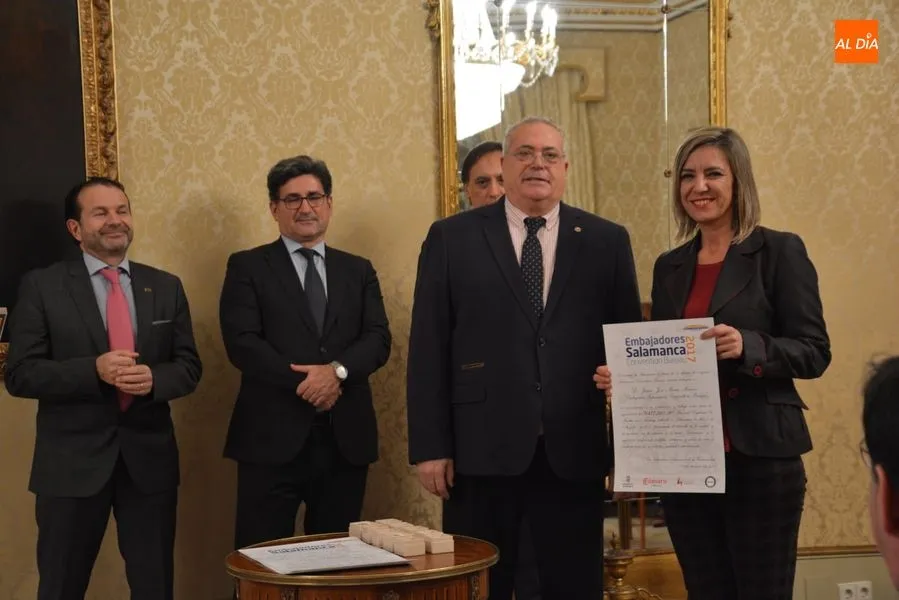 García Carbayo ha entregado este reconocimiento a quince nuevos ?embajadores? por su contribución a la organización en Salamanca de importantes eventos nacionales e internacionales, que trajeron a la ciudad en 2017 a más de 3.000 personas.