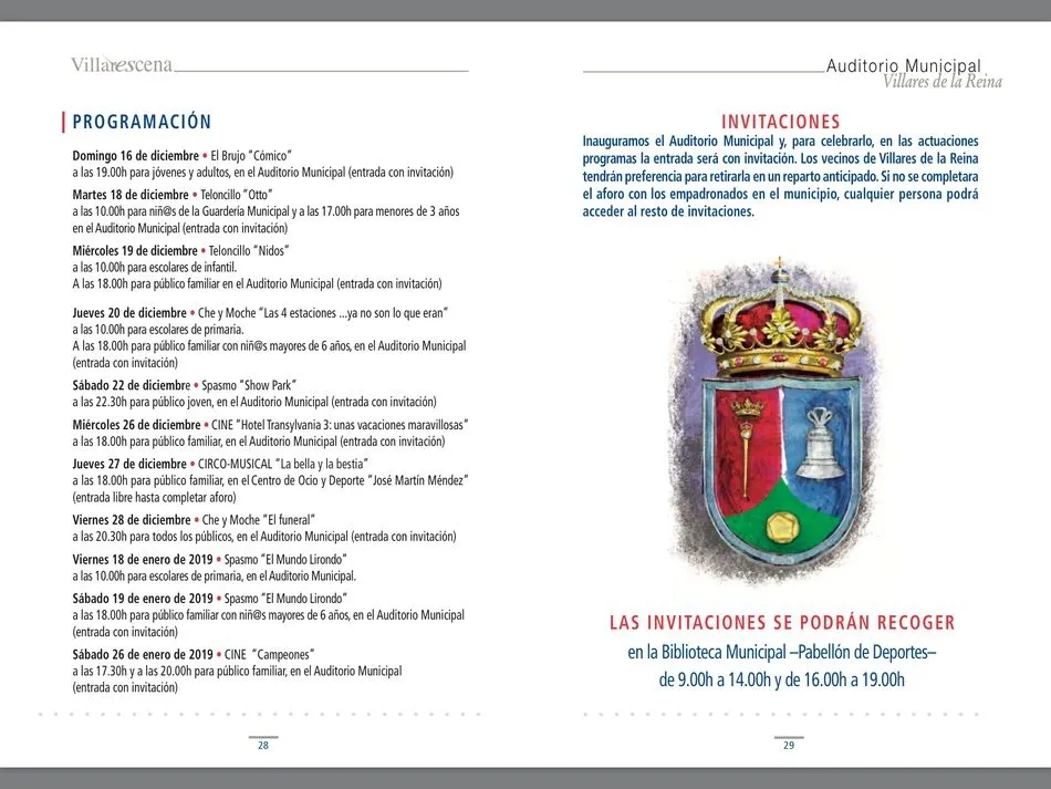 El Ayuntamiento de Villares de la Reina ha presentado este miércoles la programación escénica, musical y cinematográfica del Auditorio Municipal para los meses de diciembre y enero con motivo de su apertura.