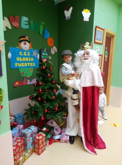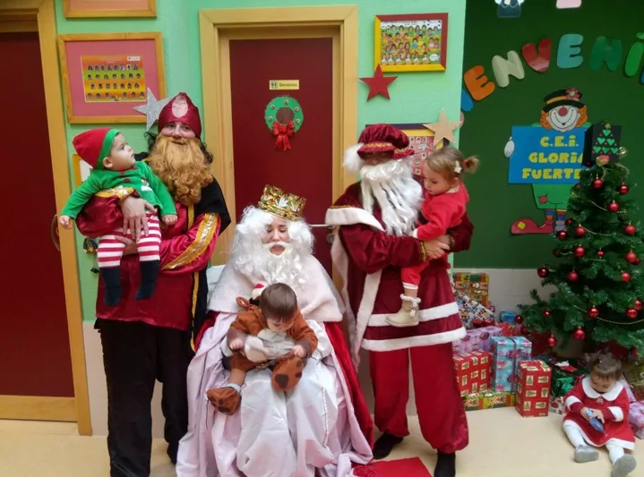 El Centro de Educación Infantil Gloria Fuertes ha celebrado este jueves la Navidad con una animada fiesta que contaba con la visita sorpresa de los Reyes Magos. Una sorprendente llegada que hacia las delicias de los pequeños, quienes no escondían su sor