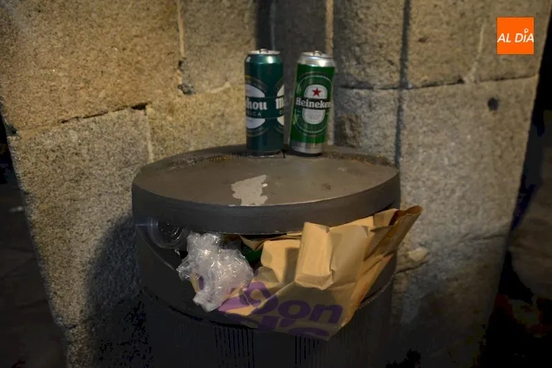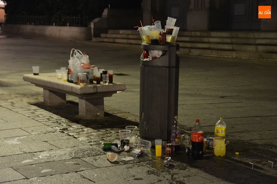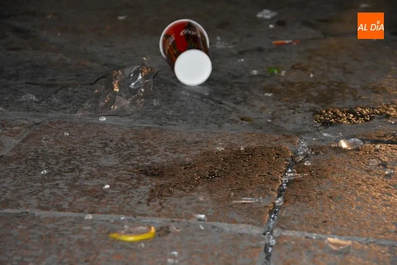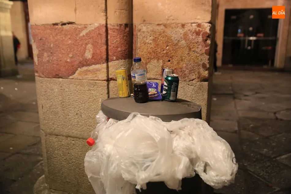 La suciedad y los restos de desperdicios a causa de los incontables botellones que tuvieron lugar durante el Fin de Año Universitario se apoderaron de la Plaza Mayor y de las calles aledañas al epicentro de celebración de una de las fiestas universitarias más conocidas en el panorama nacional.